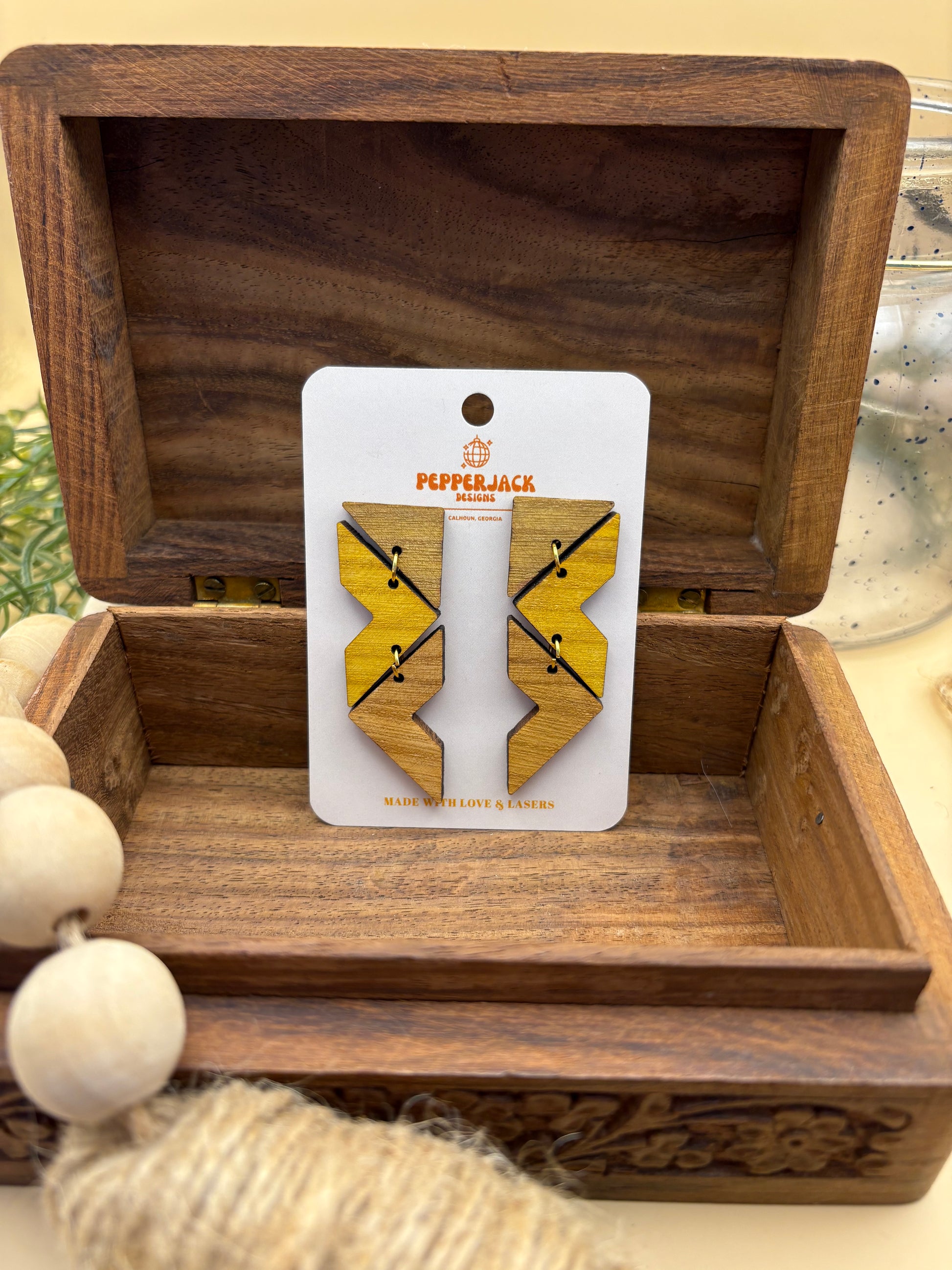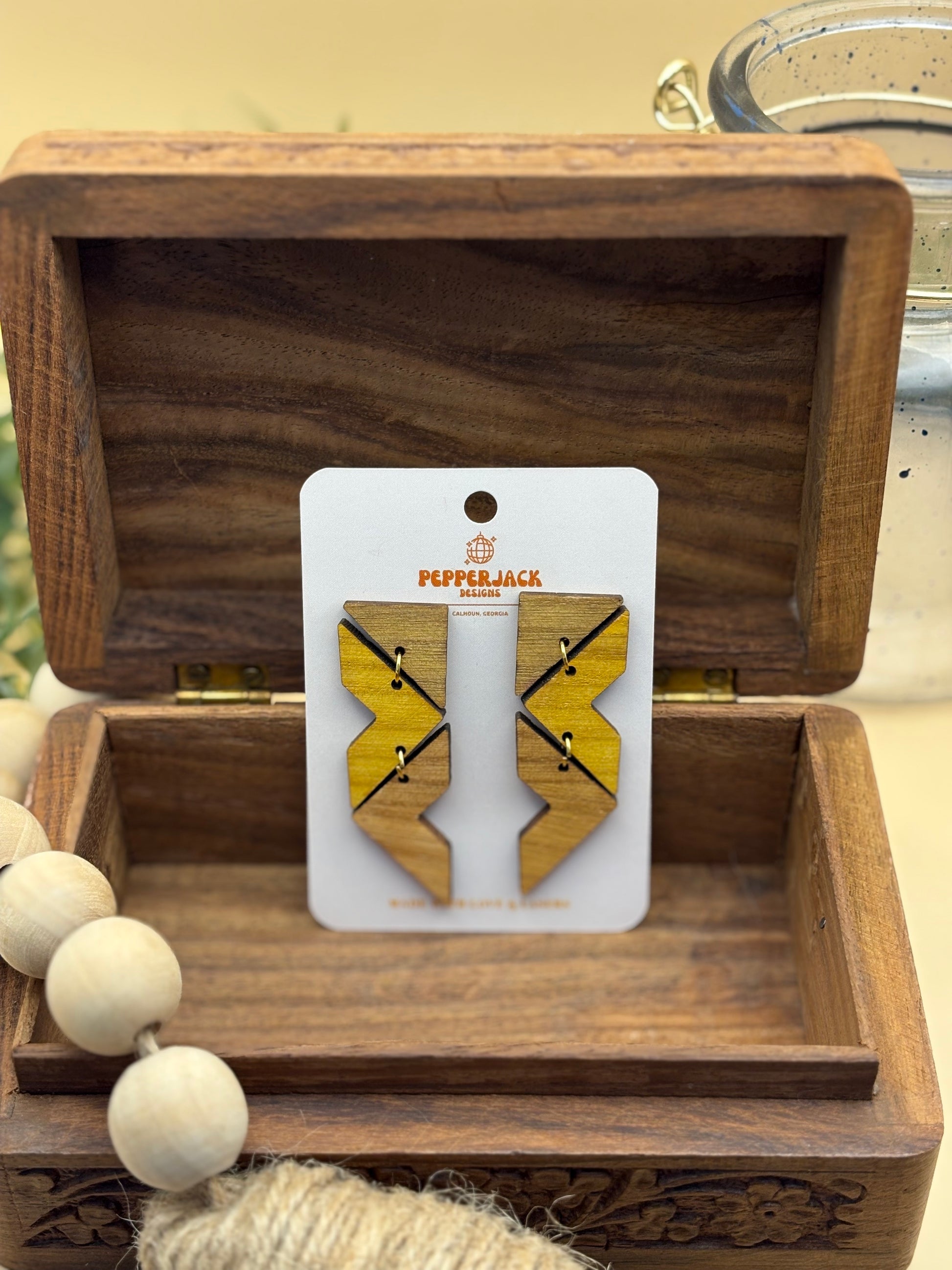 The 3 Triangle Drop Earrings by PepperJack Designs are a stunning blend of elegance and artistry. Crafted from lightweight wood, these earrings are not only comfortable to wear but also showcase a unique handmade quality. Each piece is carefully stained to enhance its natural beauty, making them a perfect accessory for any outfit. Whether you're dressing up for a special occasion or adding a touch of flair to your everyday look, these earrings are sure to turn heads and spark conversations.