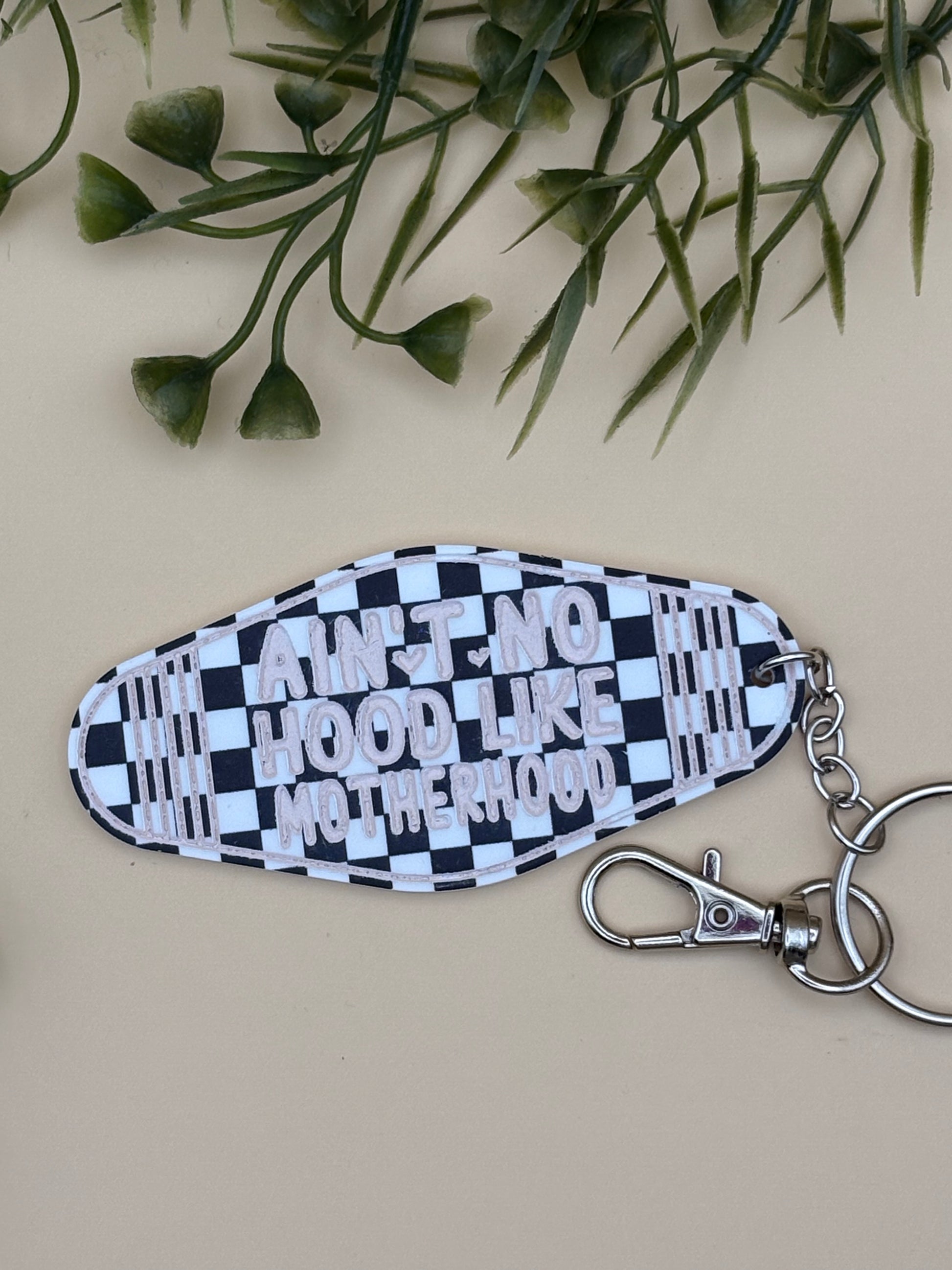Ain't No Hood Like Motherhood Motel Style Keychain