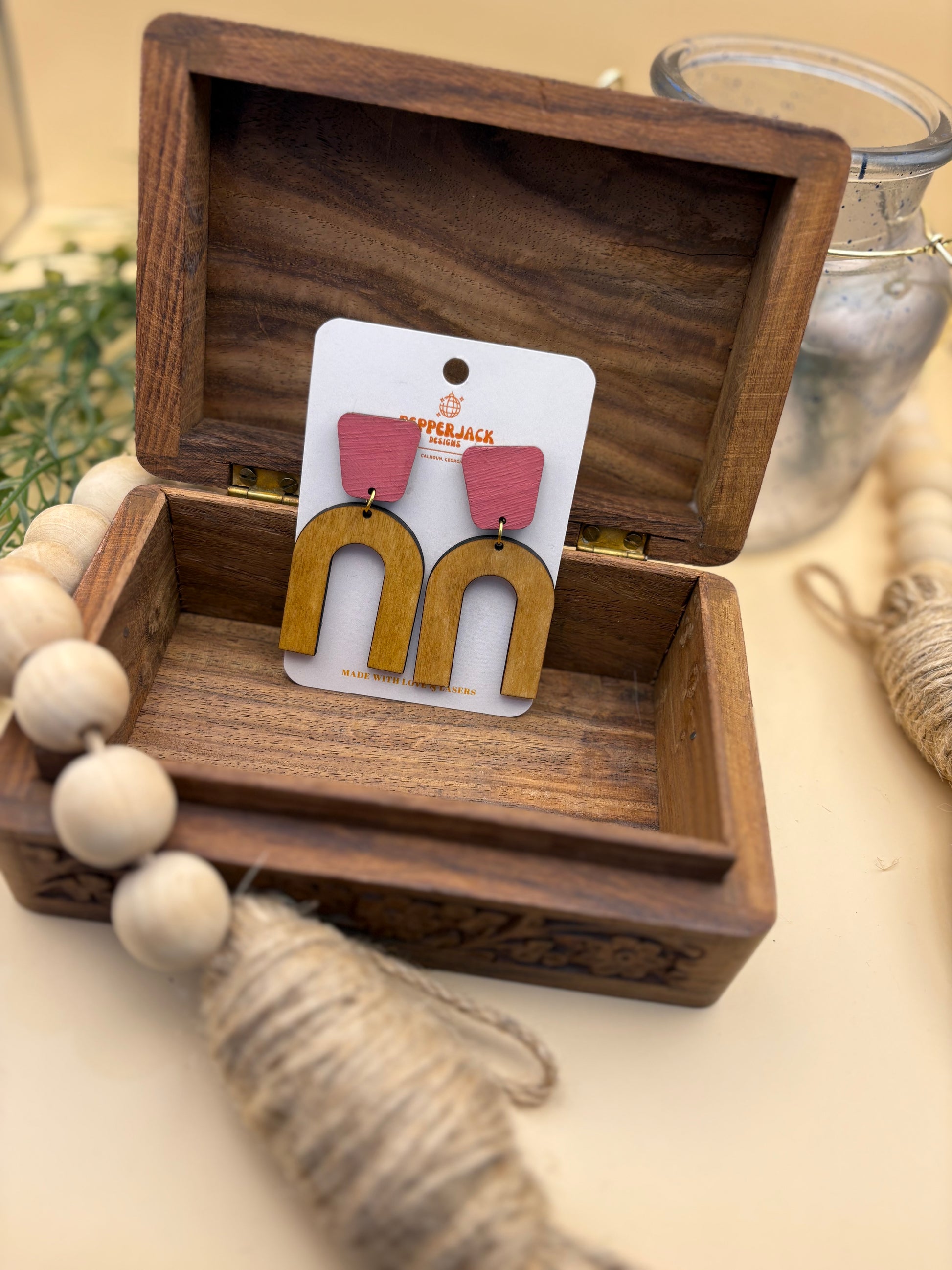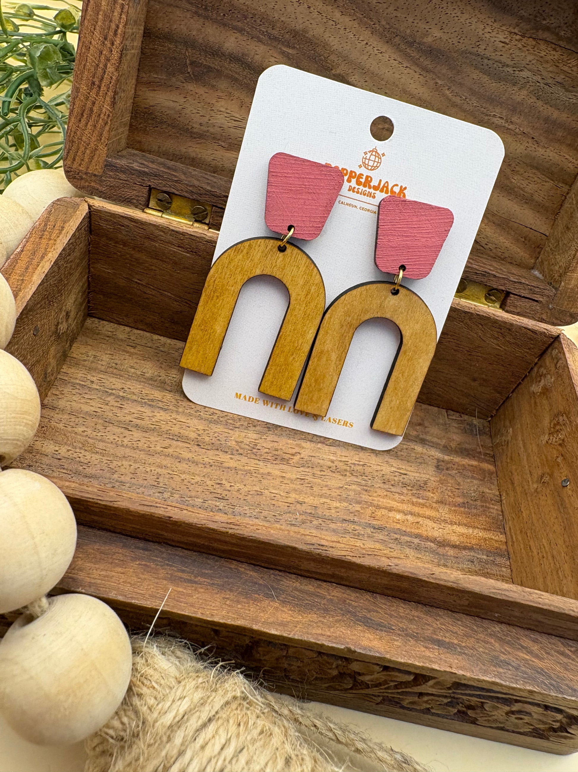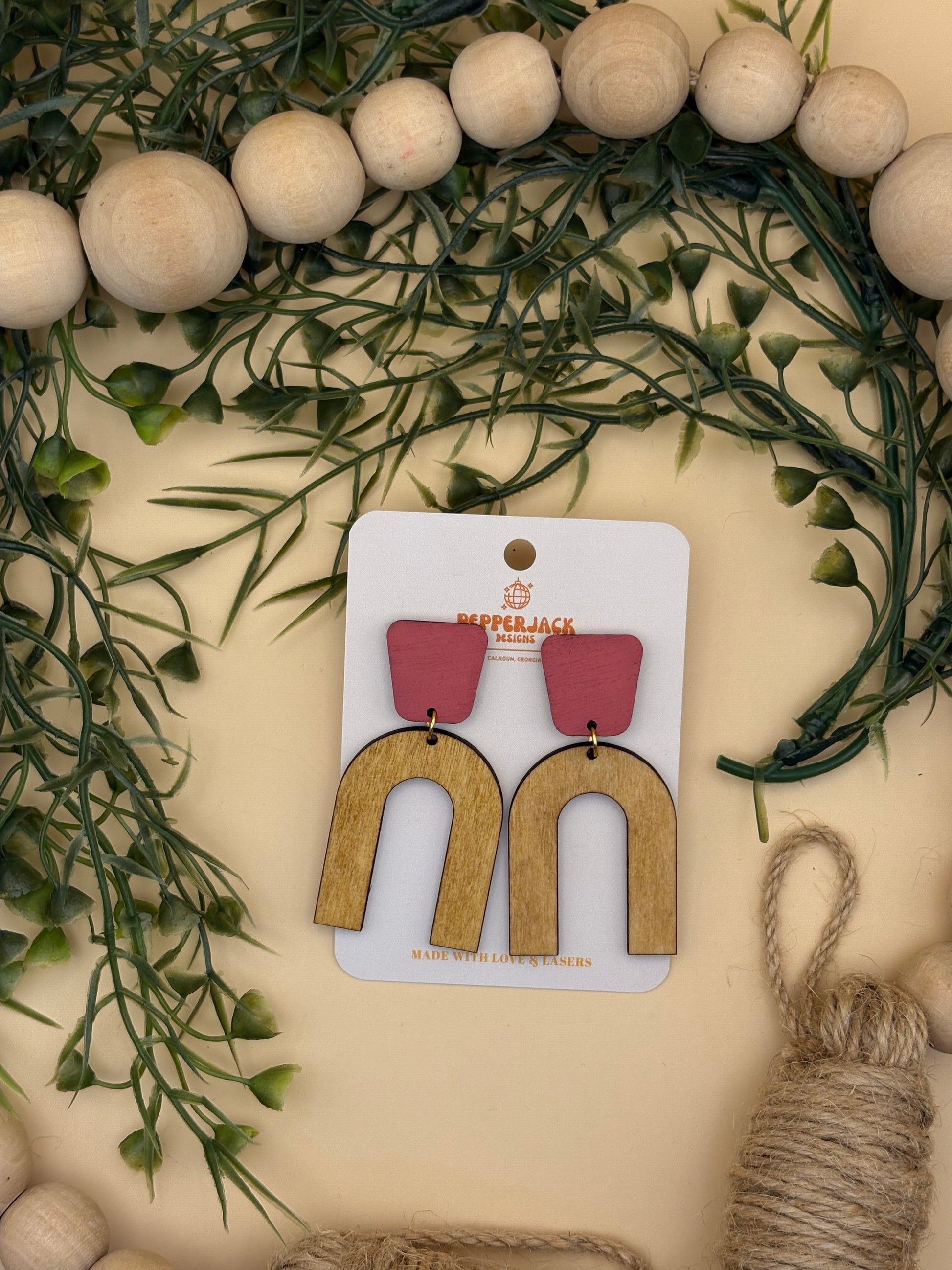 Introducing the Arch with Pink Stud Earrings by PepperJack Designs, a delightful fusion of elegance and contemporary style. These exquisite earrings are perfect for any occasion, whether you're dressing up for a special night out or adding a chic touch to your everyday ensemble. Featuring a unique geometric shape and vibrant pink studs, they are designed to catch the eye and showcase your individuality. Handmade with care in Calhoun, Georgia, these earrings not only dazzle but also embody the warmth of artisanal craftsmanship.