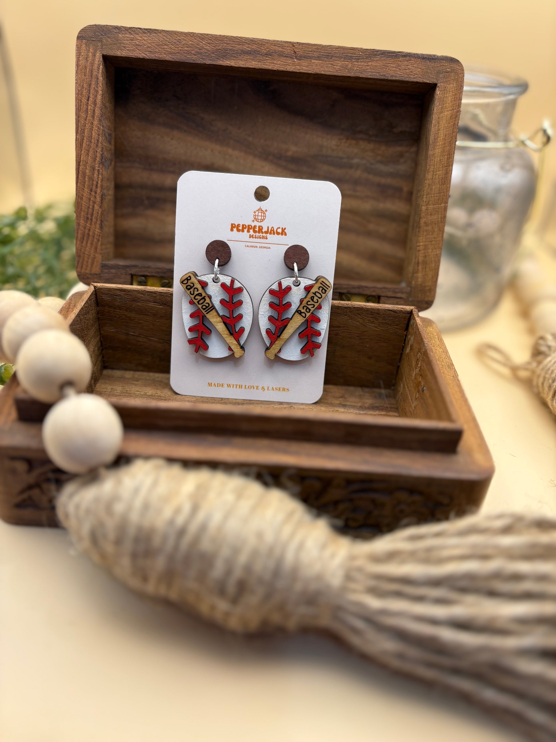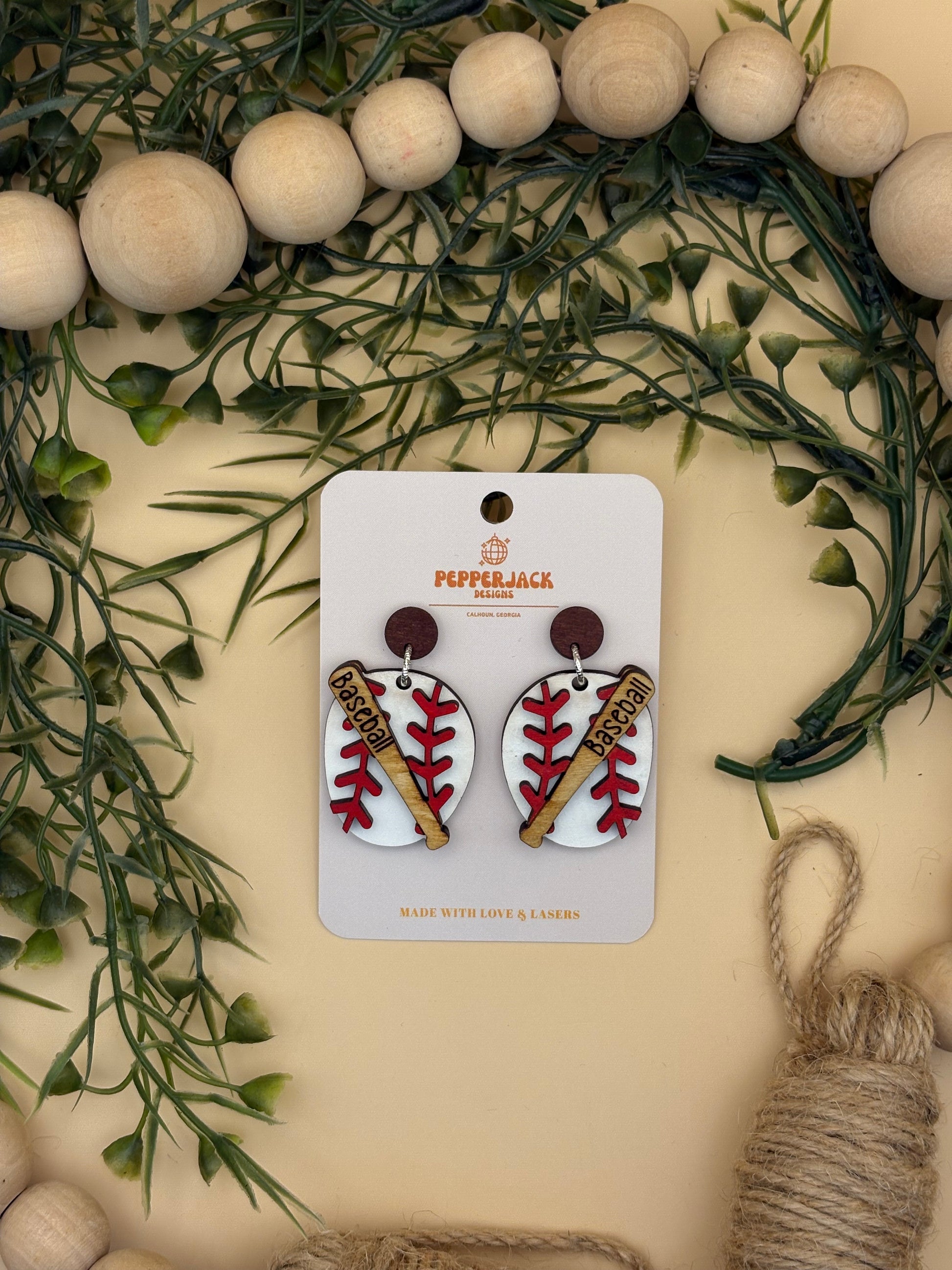Introducing the delightful Baseball Bat Earrings from PepperJack Designs! These charming earrings are crafted from lightweight wood, making them comfortable for all-day wear. Each pair is lovingly handmade and hand-painted, ensuring that every piece is unique and full of character. Perfect for baseball enthusiasts or anyone looking to add a playful touch to their outfit, these earrings are a fantastic way to showcase your love for the game. Elevate your accessory collection with these fun and stylish earrings!