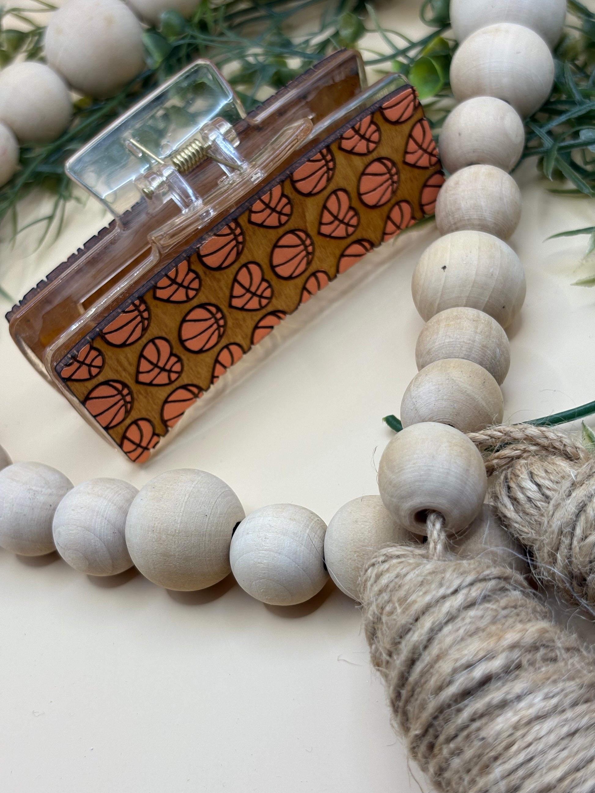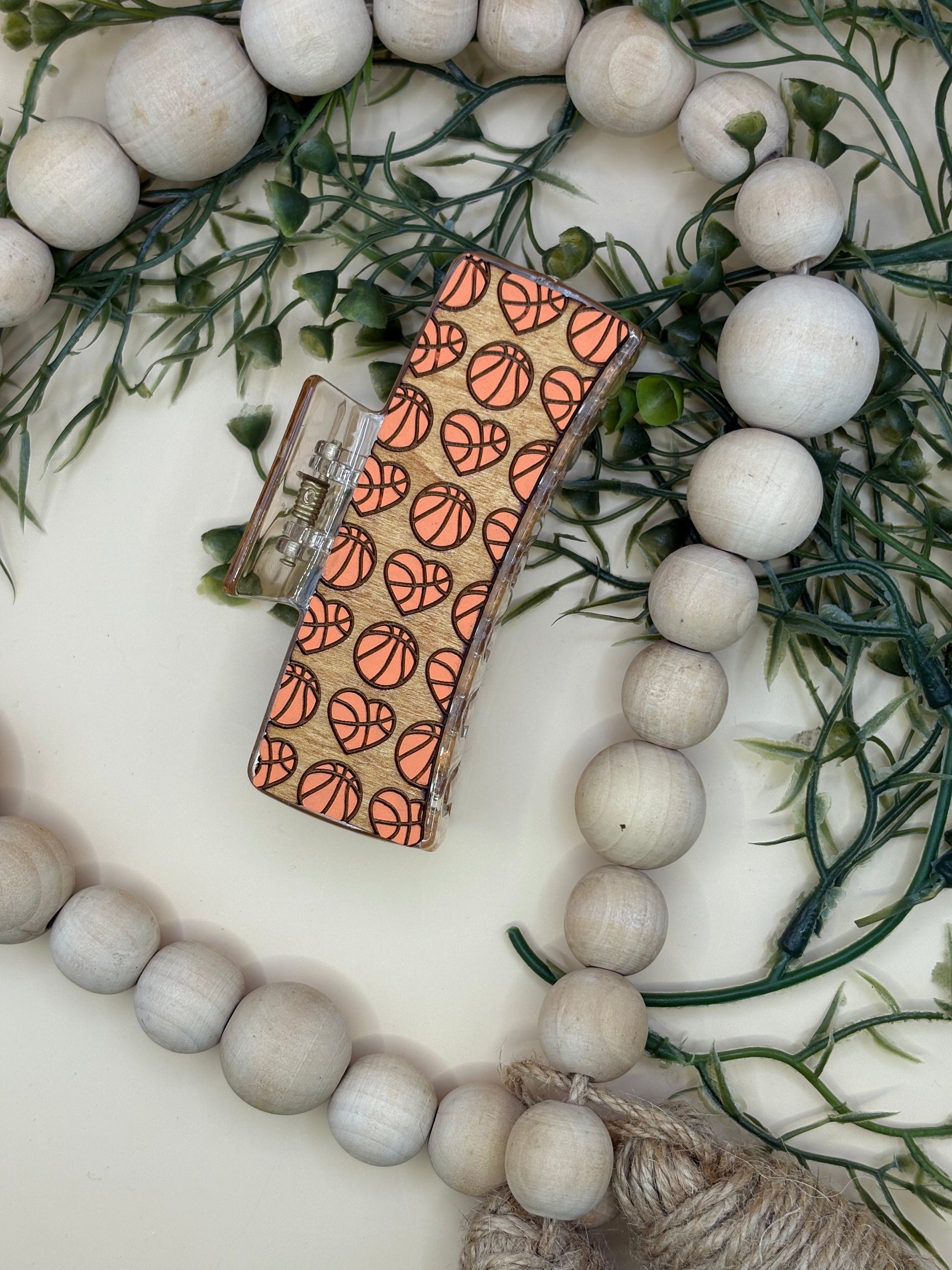 The Basketball Pattern Claw Clip by PepperJack Designs is a delightful accessory that combines functionality with a playful spirit. Crafted from lightweight wood, this clip is not only easy to wear but also showcases a vibrant basketball pattern that adds a fun flair to any hairstyle. Each clip is handmade and hand-painted, ensuring that you receive a unique piece that stands out. Perfect for sports enthusiasts or anyone looking to add a touch of personality to their look, this claw clip is a must-have for your accessory collection!