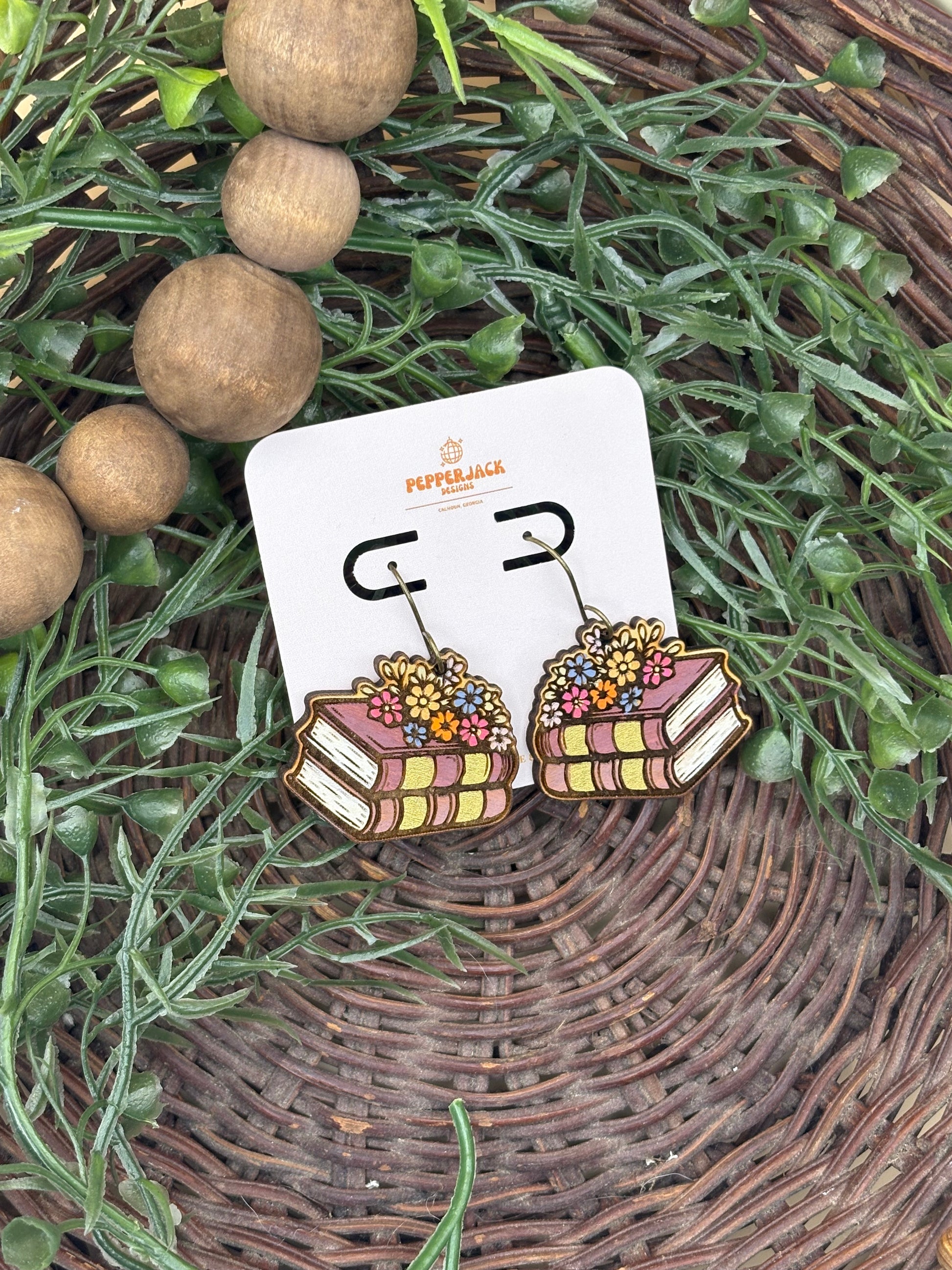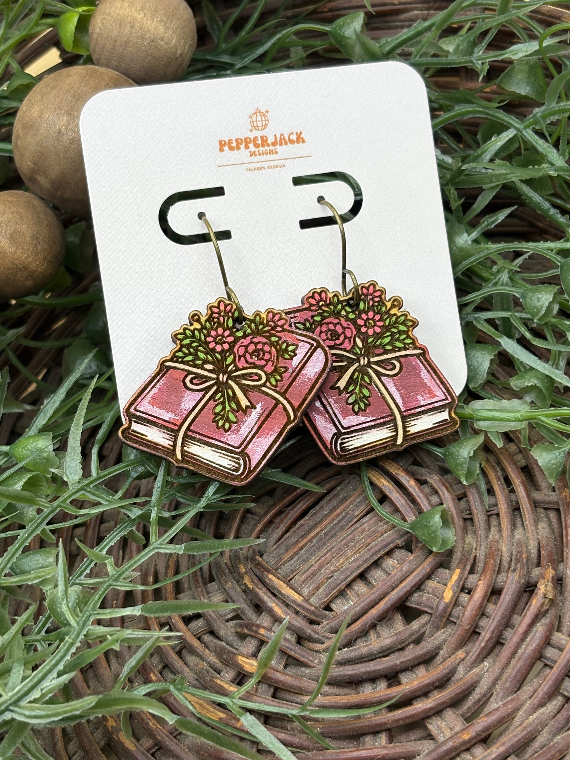 Books and Flowers Earrings from PepperJack Designs bring playful, lightweight charm to everyday wear—perfect for book lovers and floral fans alike. This collection offers multiple dangle styles. Materials commonly used across the collection include wood, and metal findings, and many floral pieces. Hardware is noted as medical-grade hypoallergenic stainless steel for comfortable wear. This collection is an easy, budget-friendly way to express a love of reading and nature.