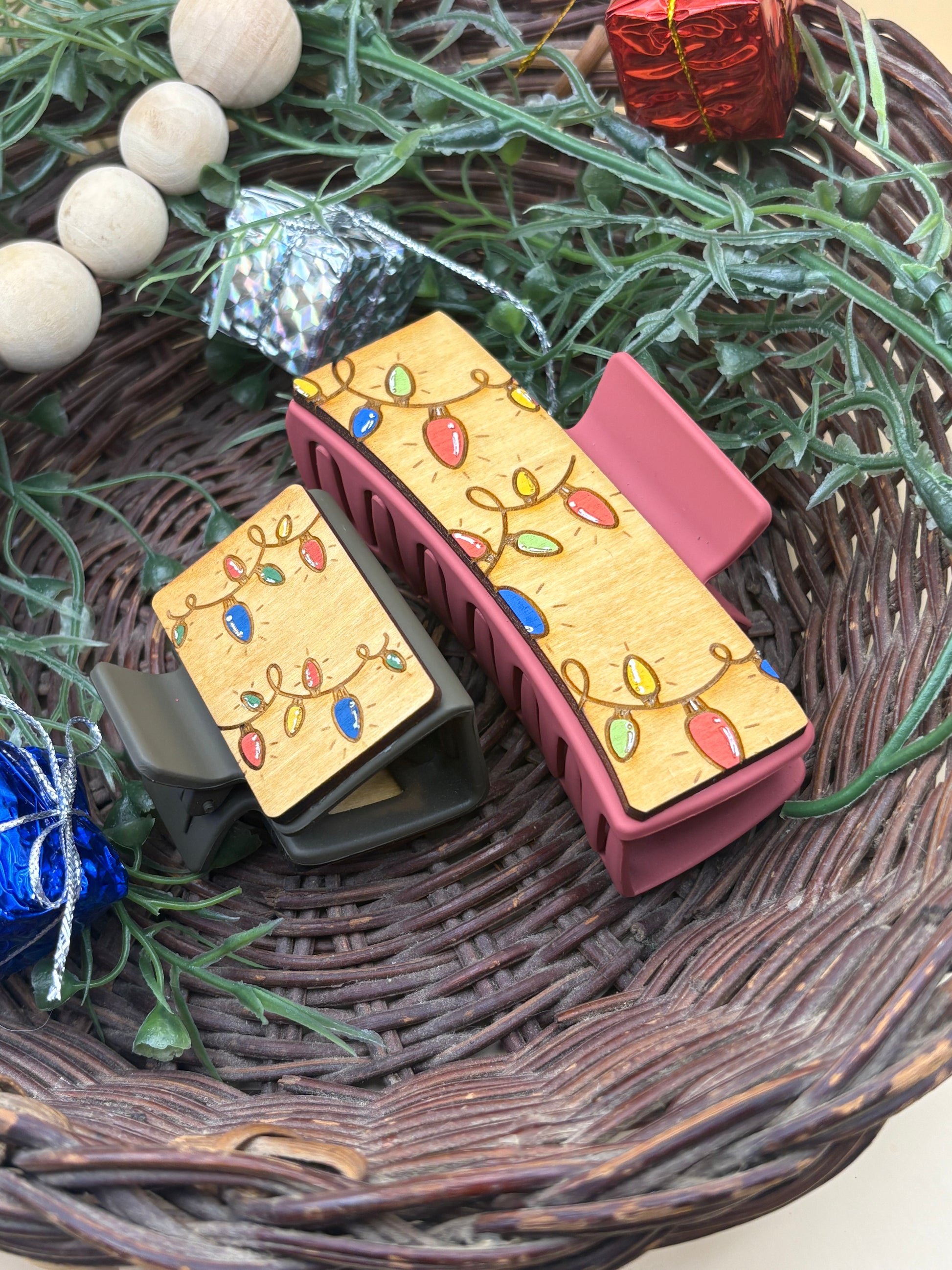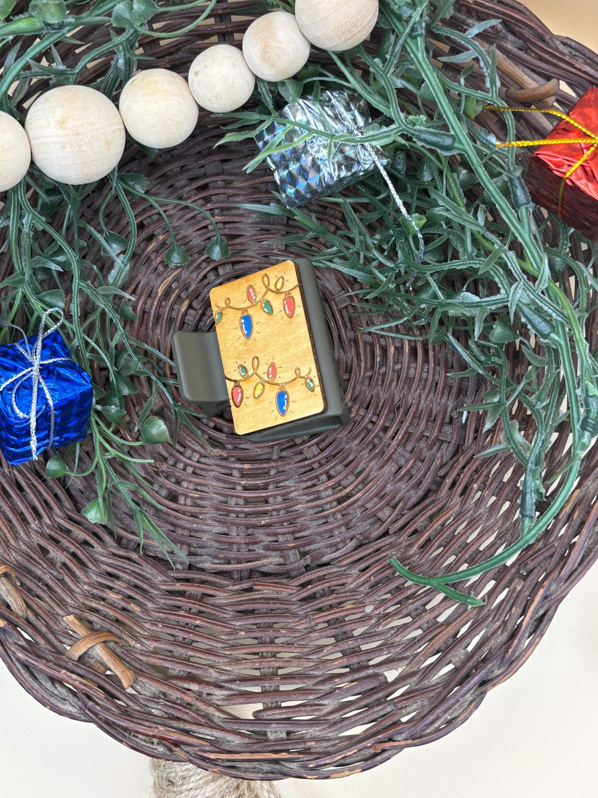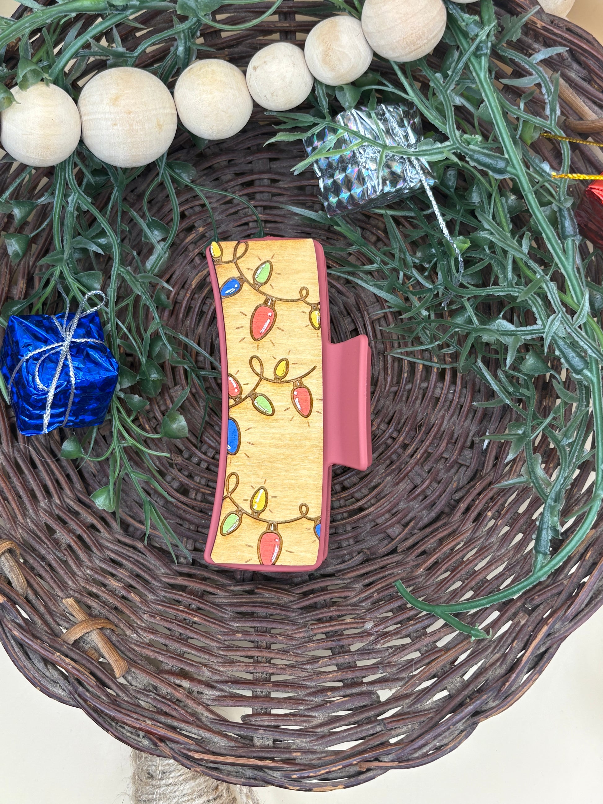 Made from lightweight wood. Handmade and hand painted. Features Christmas lights.
