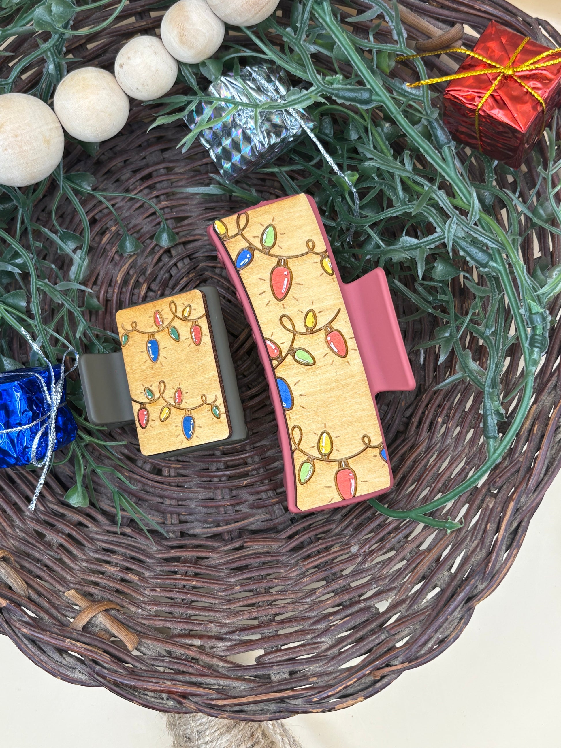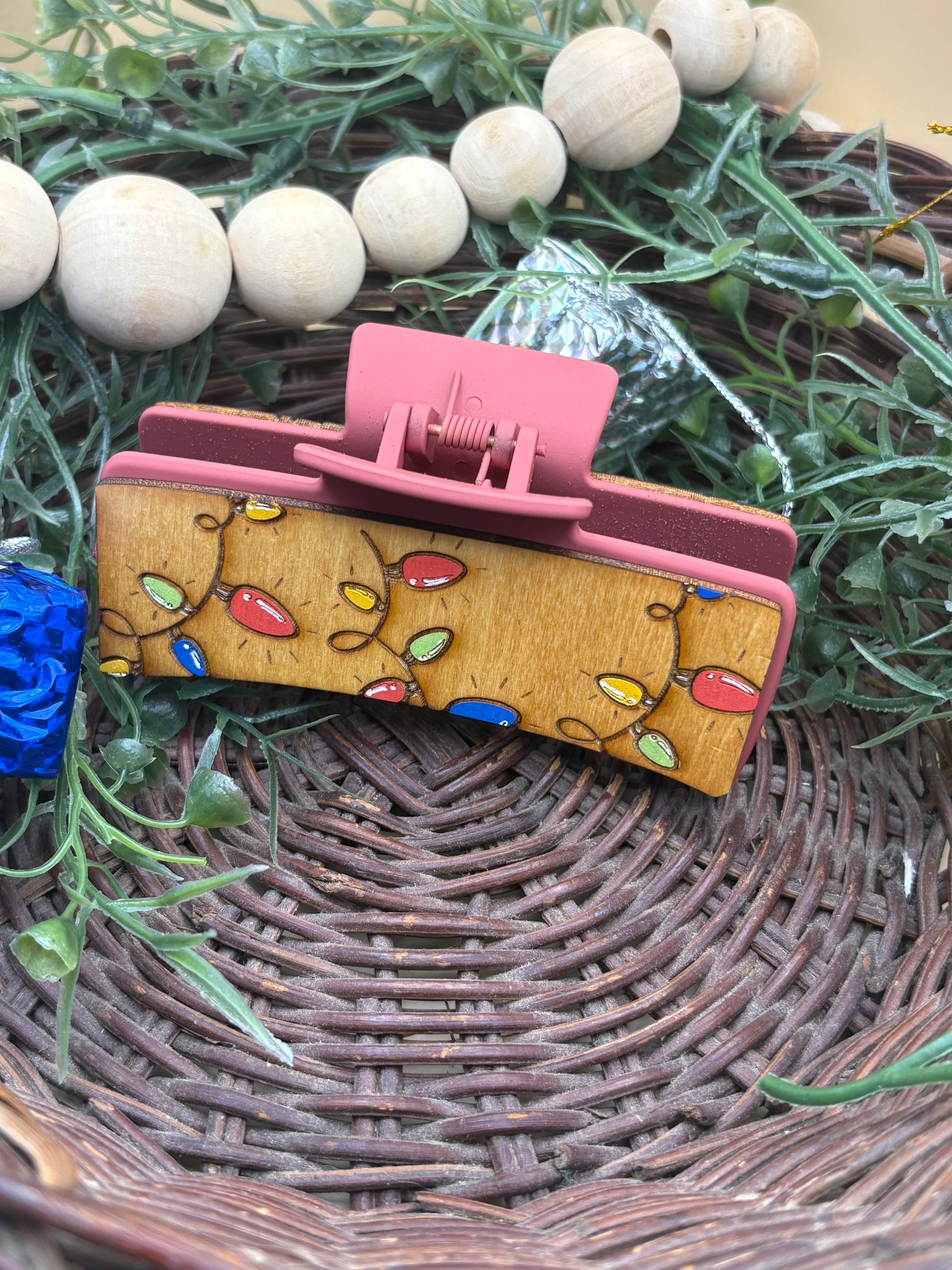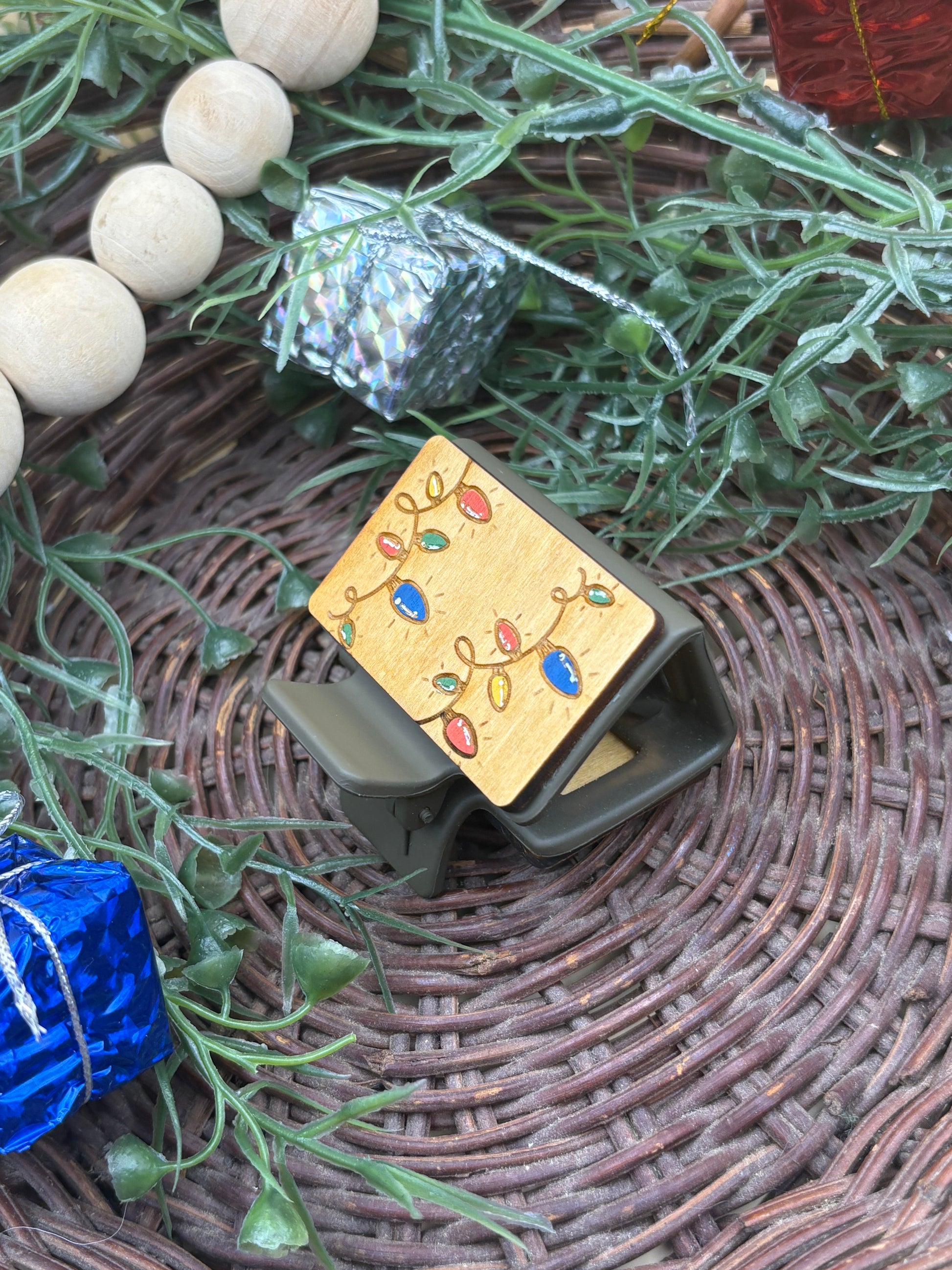 Made from lightweight wood. Handmade and hand painted. Features Christmas lights.