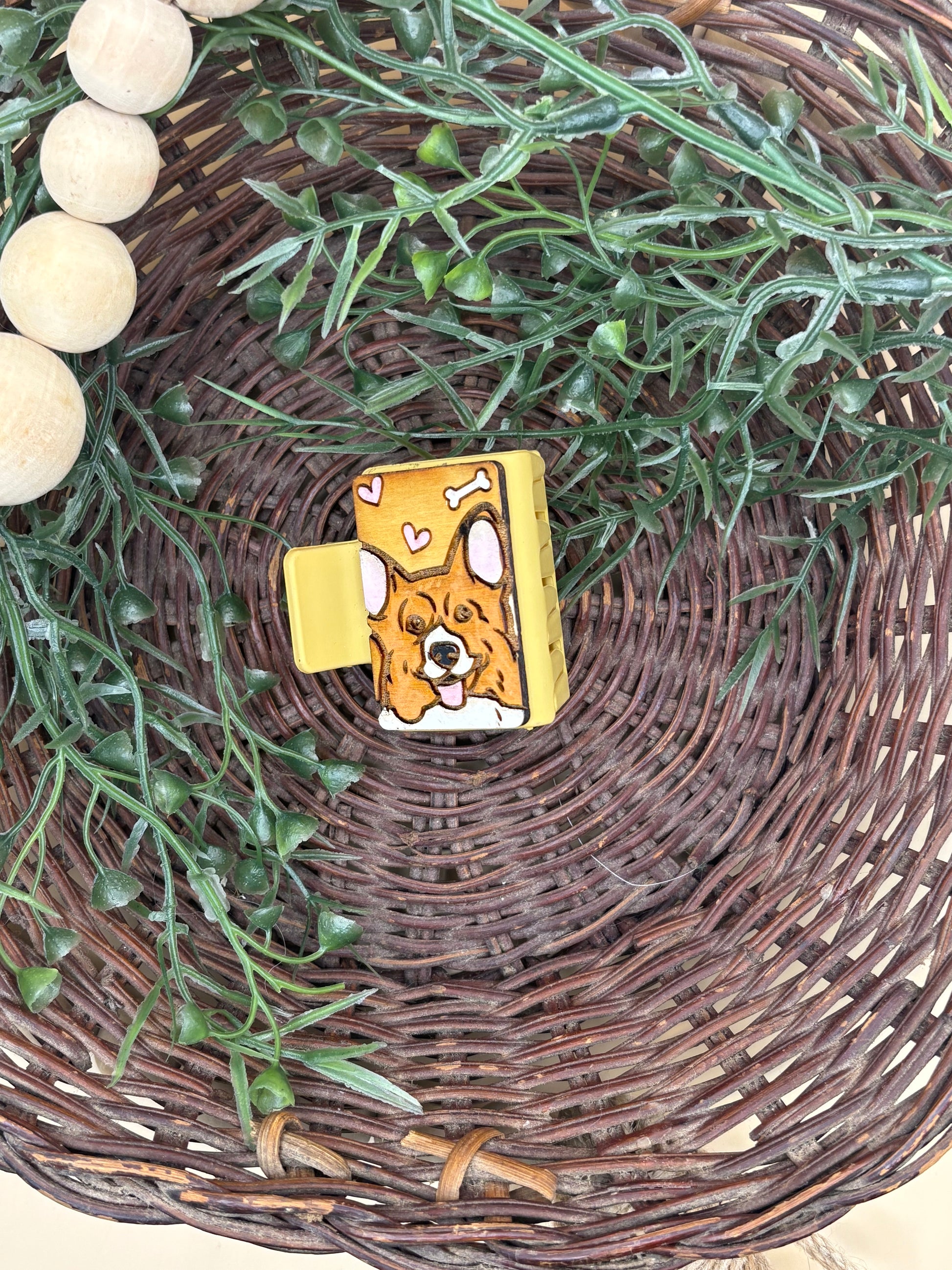 Corgi Mini Clip from PepperJack Designs is a charming, handcrafted wooden accessory designed to add a playful touch to bags, papers, or gift wrap. Made from lightweight wood and finished with careful hand painting, each clip features an engraved corgi motif for a durable decorative accent. Its compact profile makes it easy to tuck into stationery, zipper pulls, or craft projects, while the handmade construction ensures each piece has its own unique character. Ideal as a small gift or accent piece, the Corgi Mini Clip brings personality and cheerful detail to everyday items