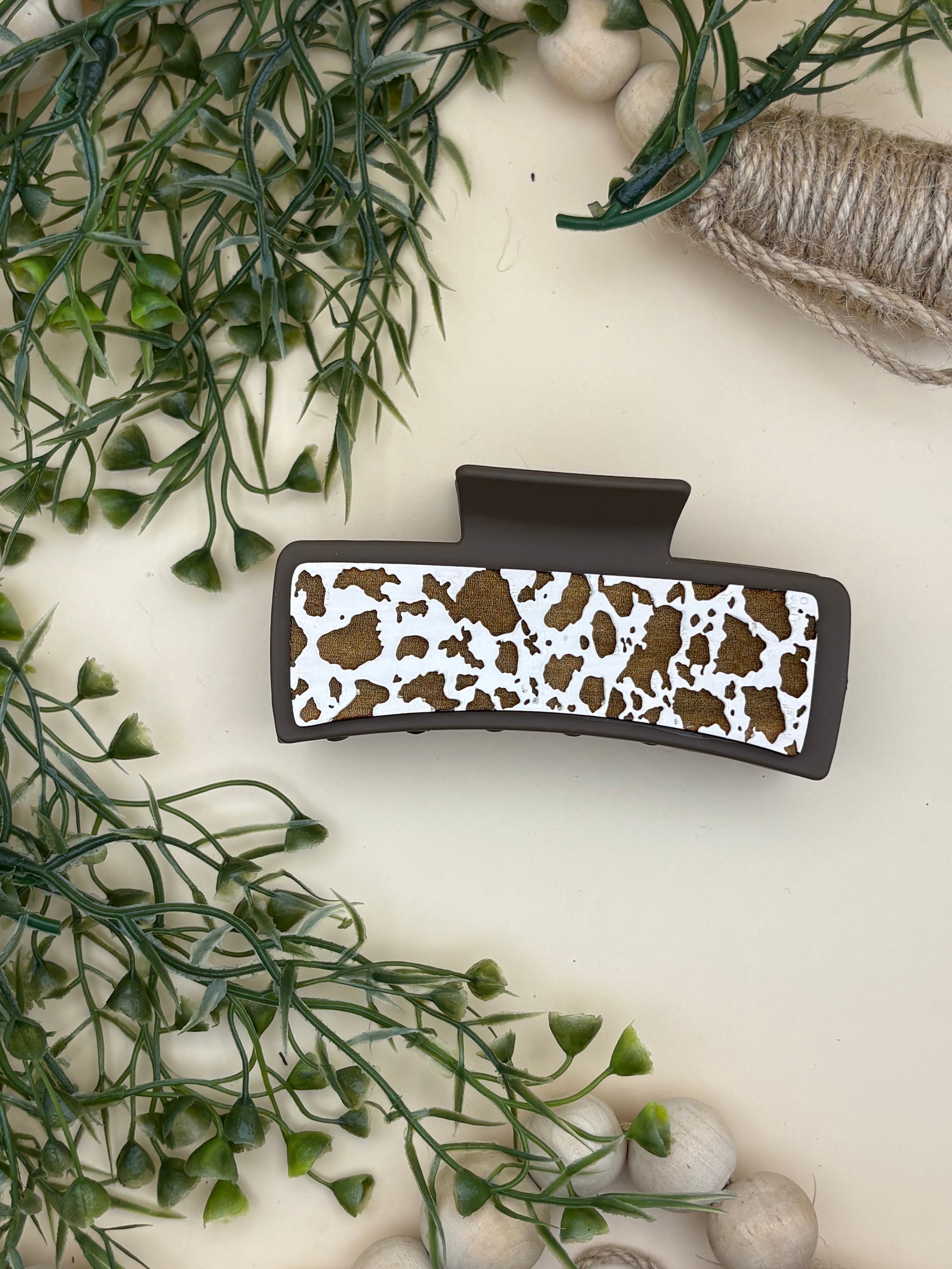 PepperJack Designs proudly presents the Cow Print Claw Clip, a delightful accessory that effortlessly elevates your hair styling game! This charming claw clip features a trendy cow print design, blending functionality with flair. Whether you're preparing for a special event or simply want to add a touch of fun to your everyday look, this clip securely holds your hair while showcasing your unique style. With its playful pattern, it’s not just a hair tool; it’s a fashion statement that reflects your vibrant personality.