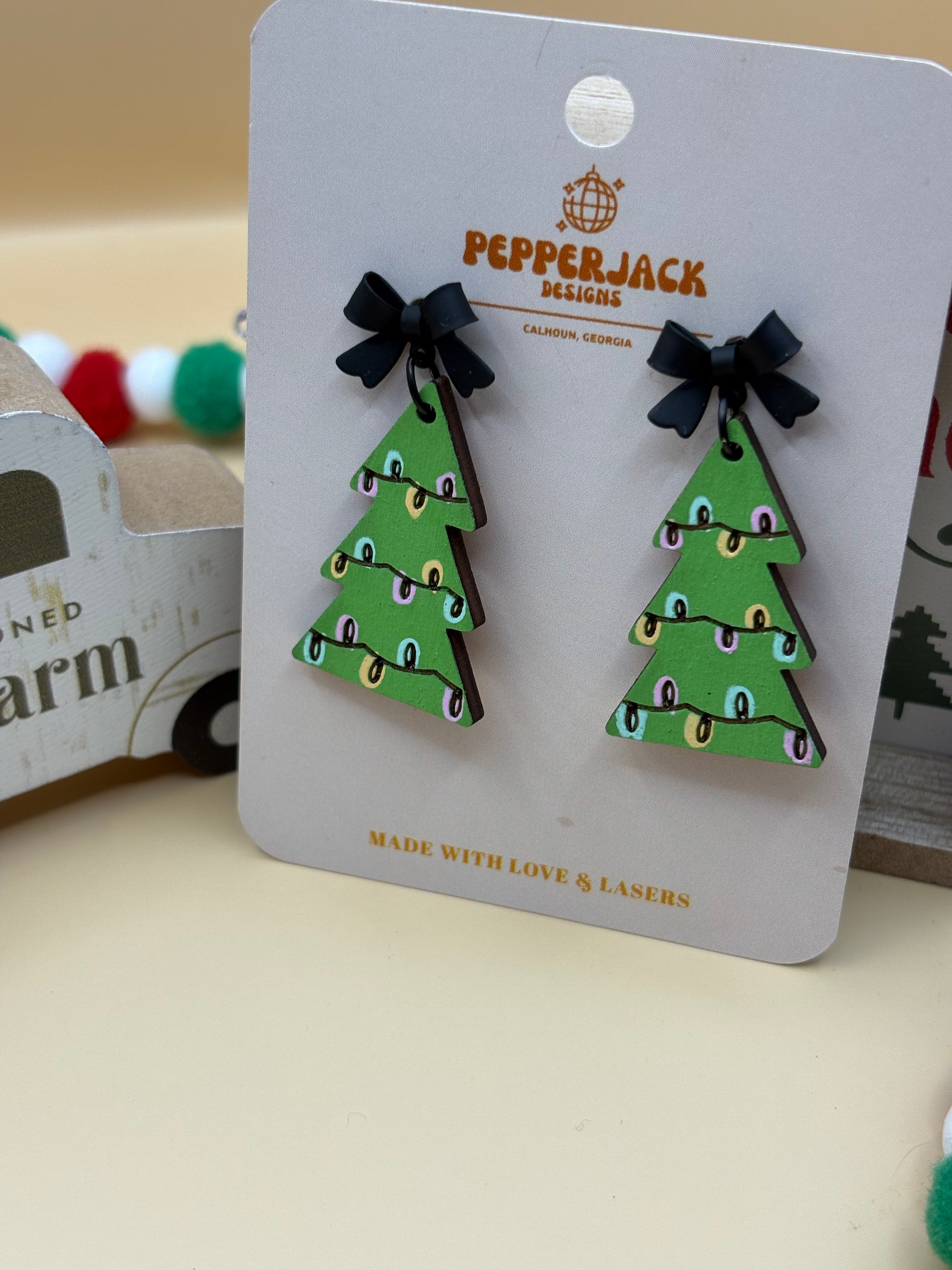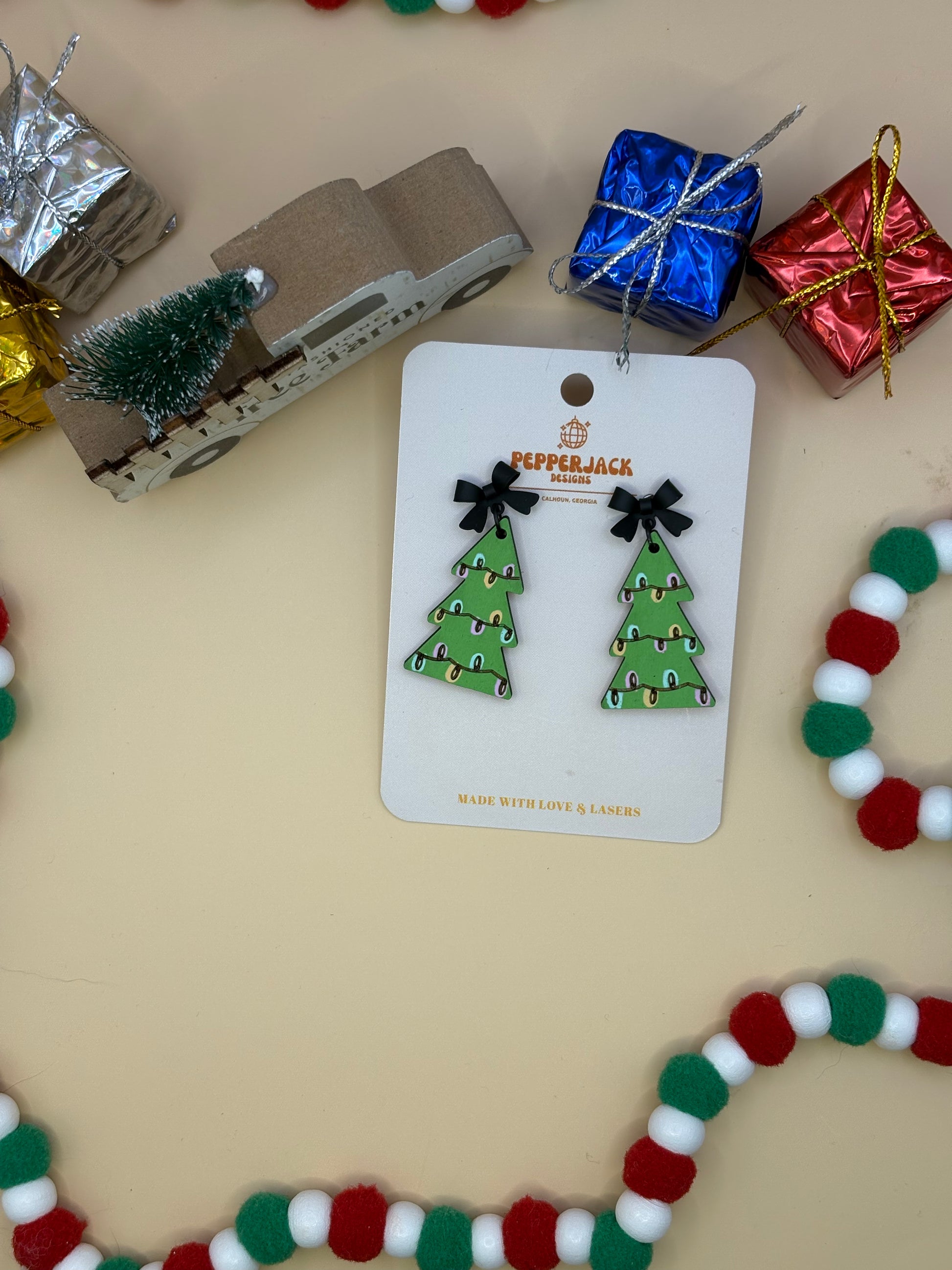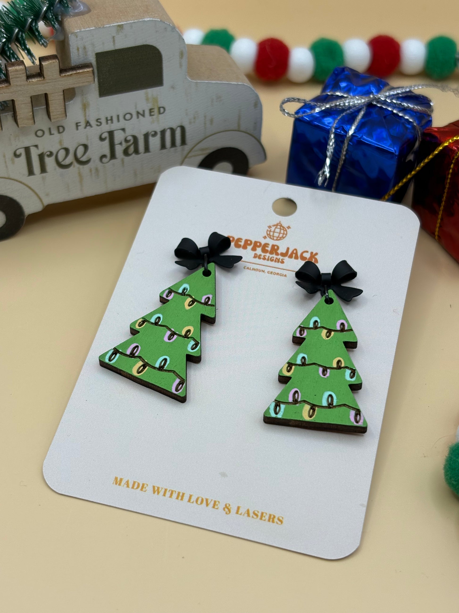 Cute Lighted Christmas Tree Earrings by PepperJack Designs