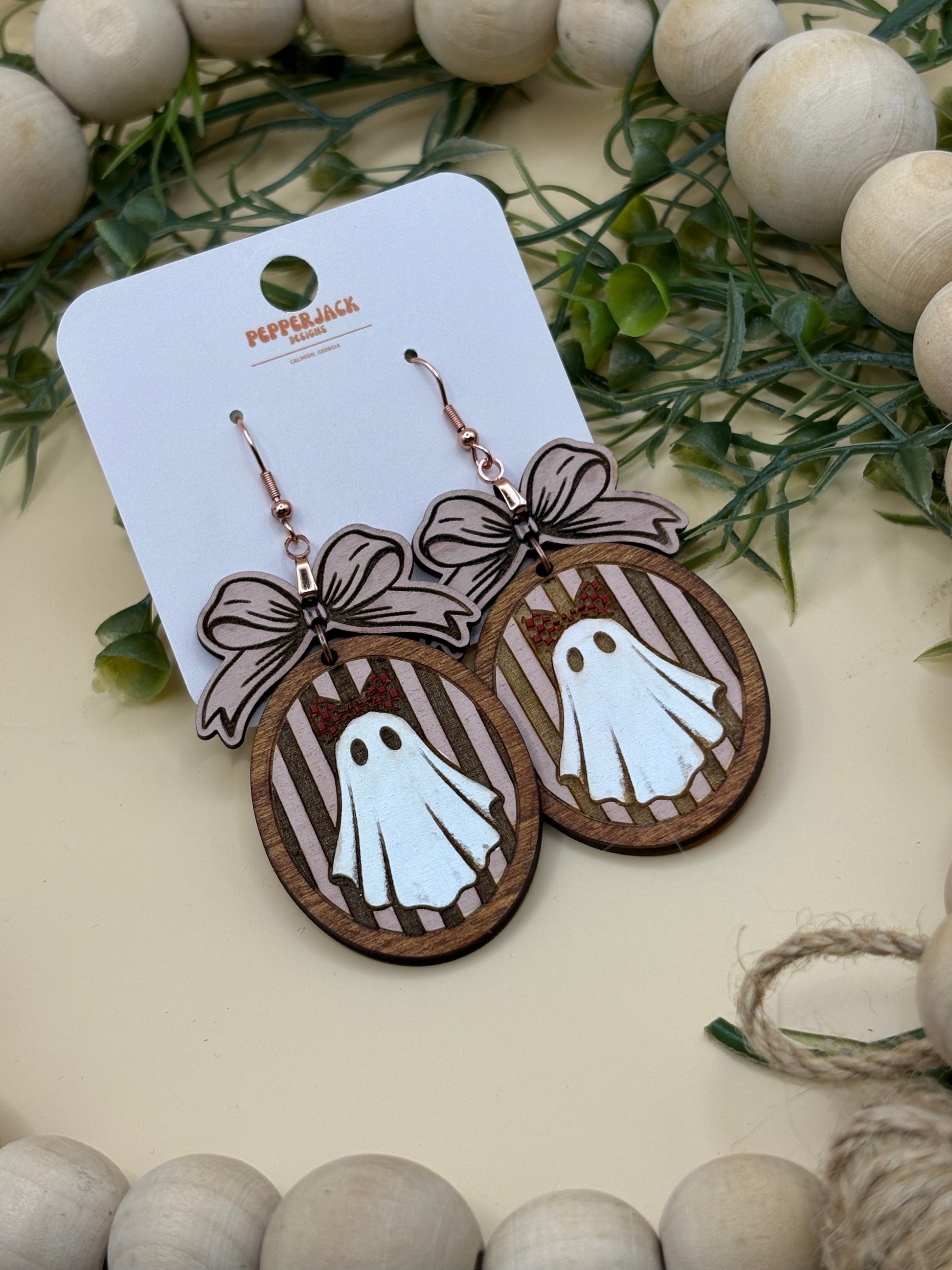 Ghost With Bow Retro Striped Earrings by PepperJack Designs