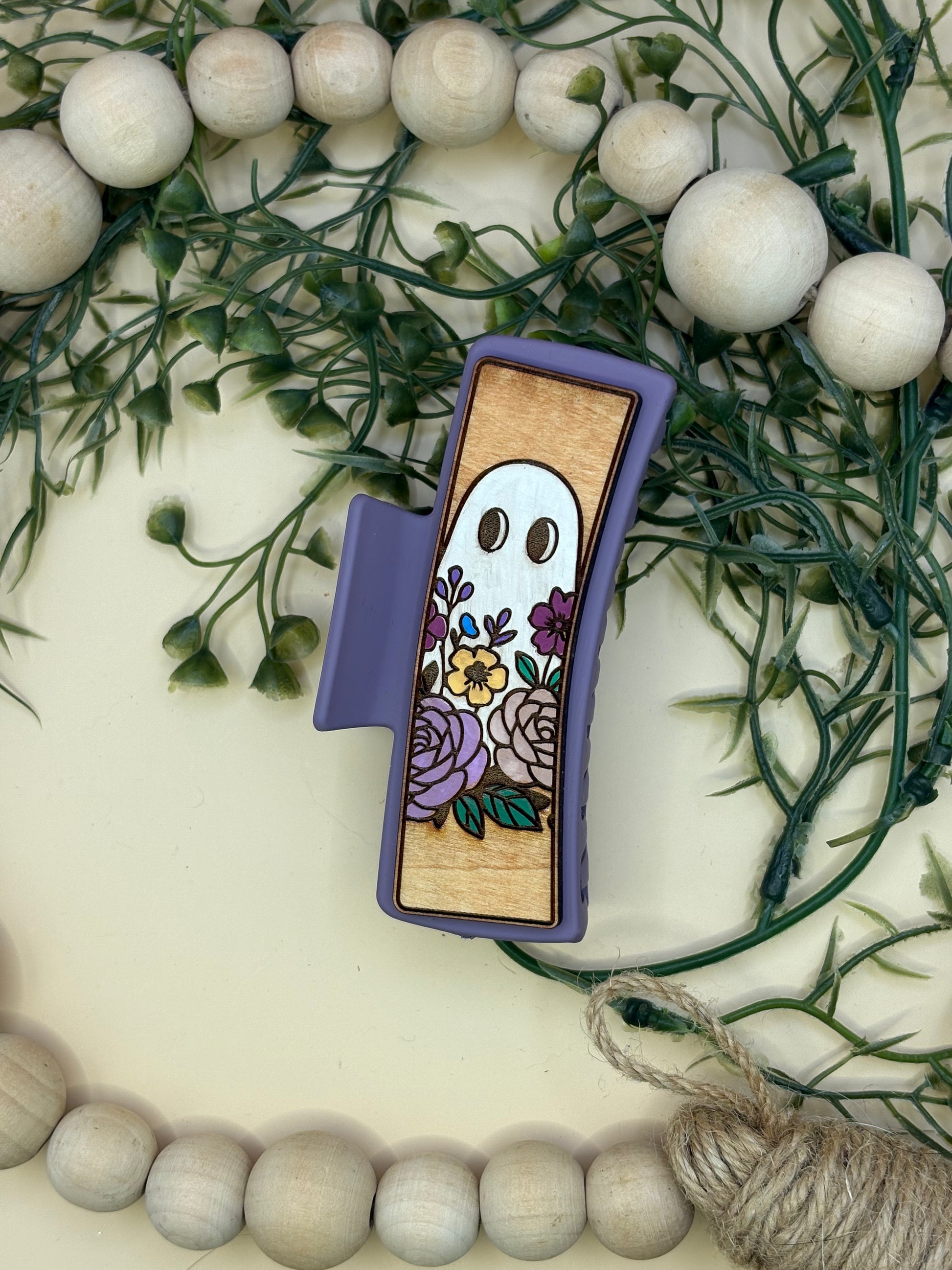 Ghost With Flowers Claw Clip by PepperJack Designs