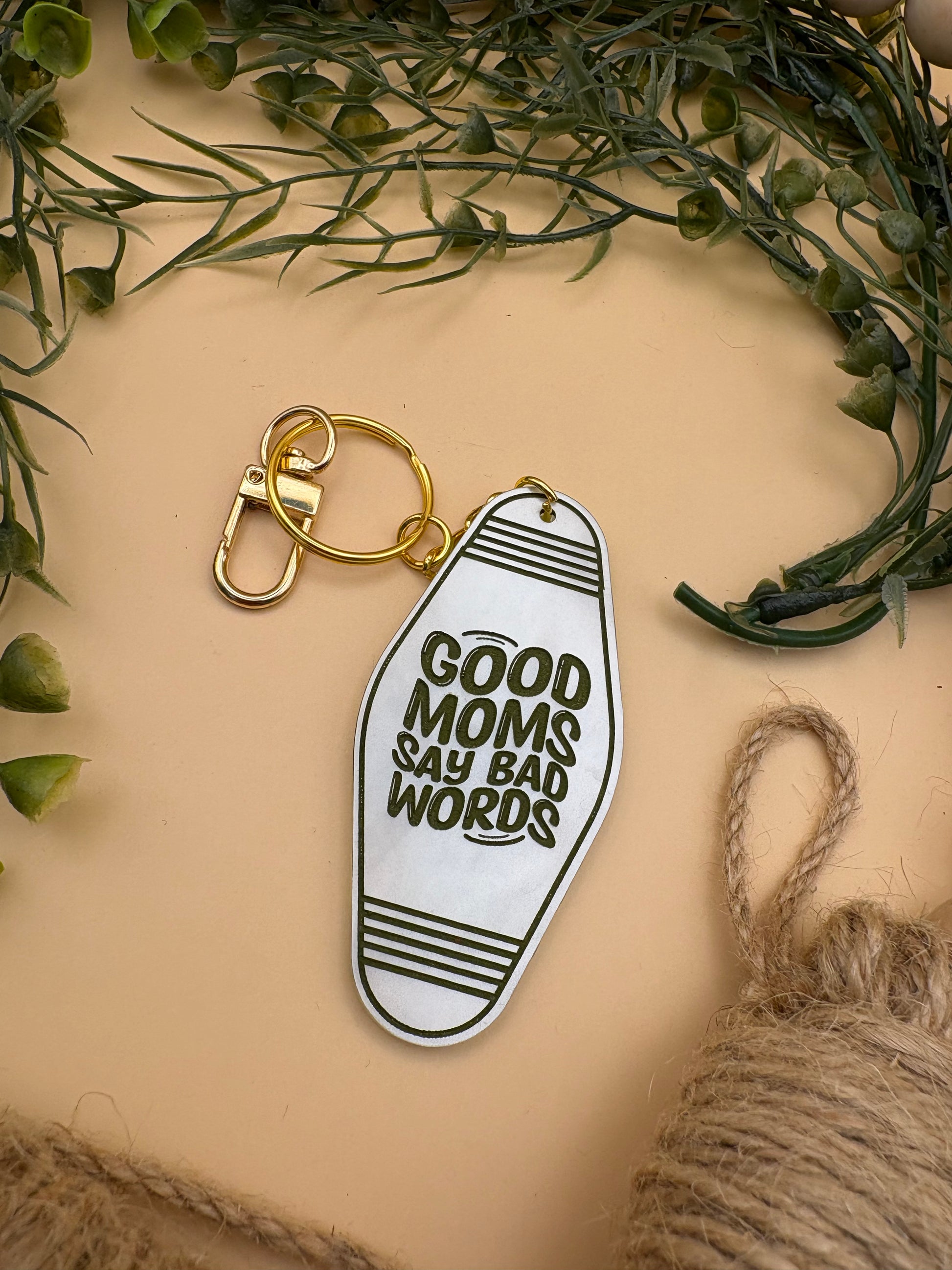 Good Moms Say Bad Words Motel Style Keychain by PepperJack Designs