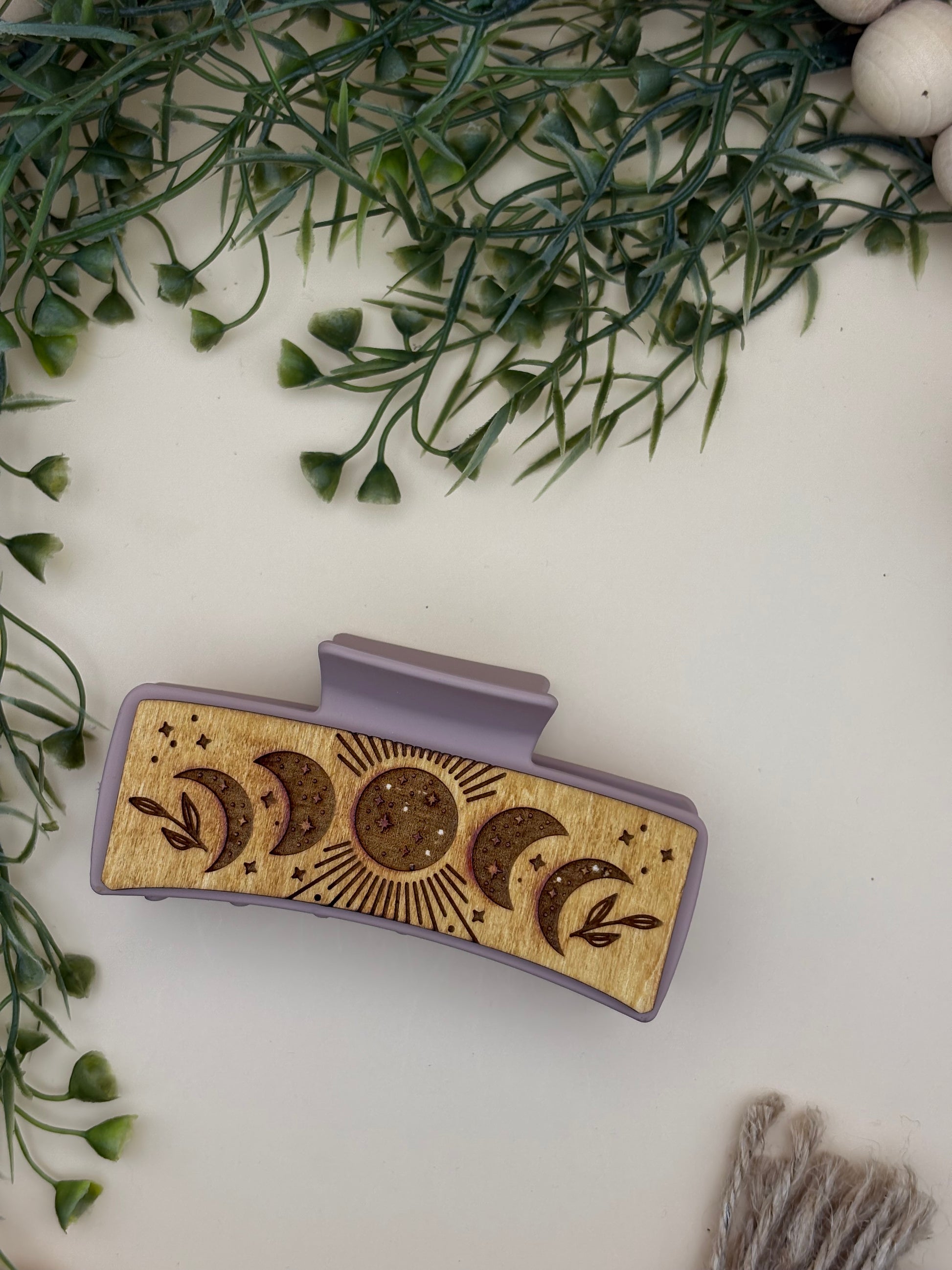 PepperJack Designs introduces the enchanting Moon Phases Claw Clip, a delightful accessory that beautifully marries practicality with celestial elegance. Perfect for those who adore the mysteries of the night sky, this clip not only secures your hair but also adds a whimsical flair to any outfit. Whether you're preparing for a special event or simply heading out for the day, this clip infuses a touch of magic into your routine. The intricate moon phase design reflects your love for nature, transforming a functional item into a stunning statement piece. Elevate your hairstyle and showcase your unique personality with this captivating claw clip!