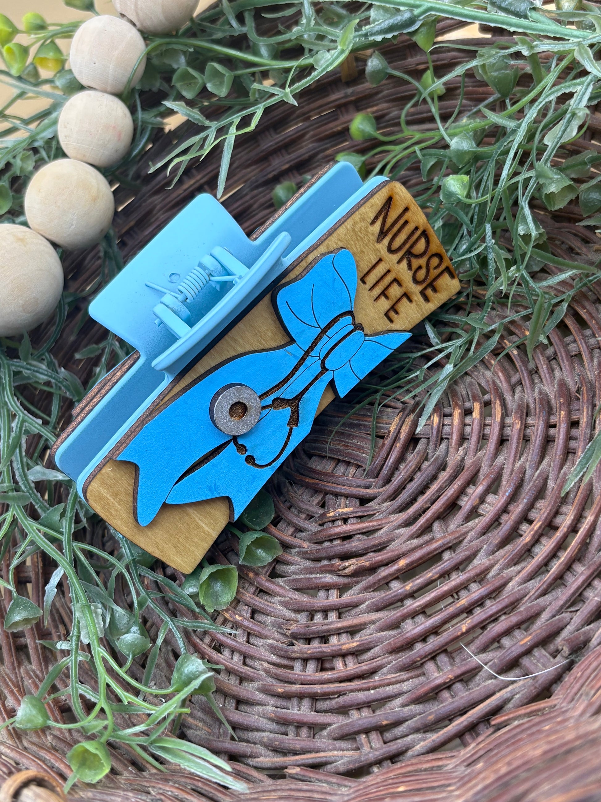 The Nurse Life Claw Clip from PepperJack Designs is a lightweight, handmade accessory crafted to add a cheerful touch to busy shifts. It features a blue bow with a stethoscope motif and the words Nurse Life engraved for a personalized, wearable nod to healthcare heroes. Each piece is hand-painted, ensuring a unique finish that complements scrubs and everyday outfits. Ideal as a thoughtful gift for nurses, colleagues, or friends who celebrate caregiver life, this claw clip stays secure through long hours of styling while remaining gentle on hair. To keep it looking its best, wipe with a soft cloth and avoid prolonged immersion in water.