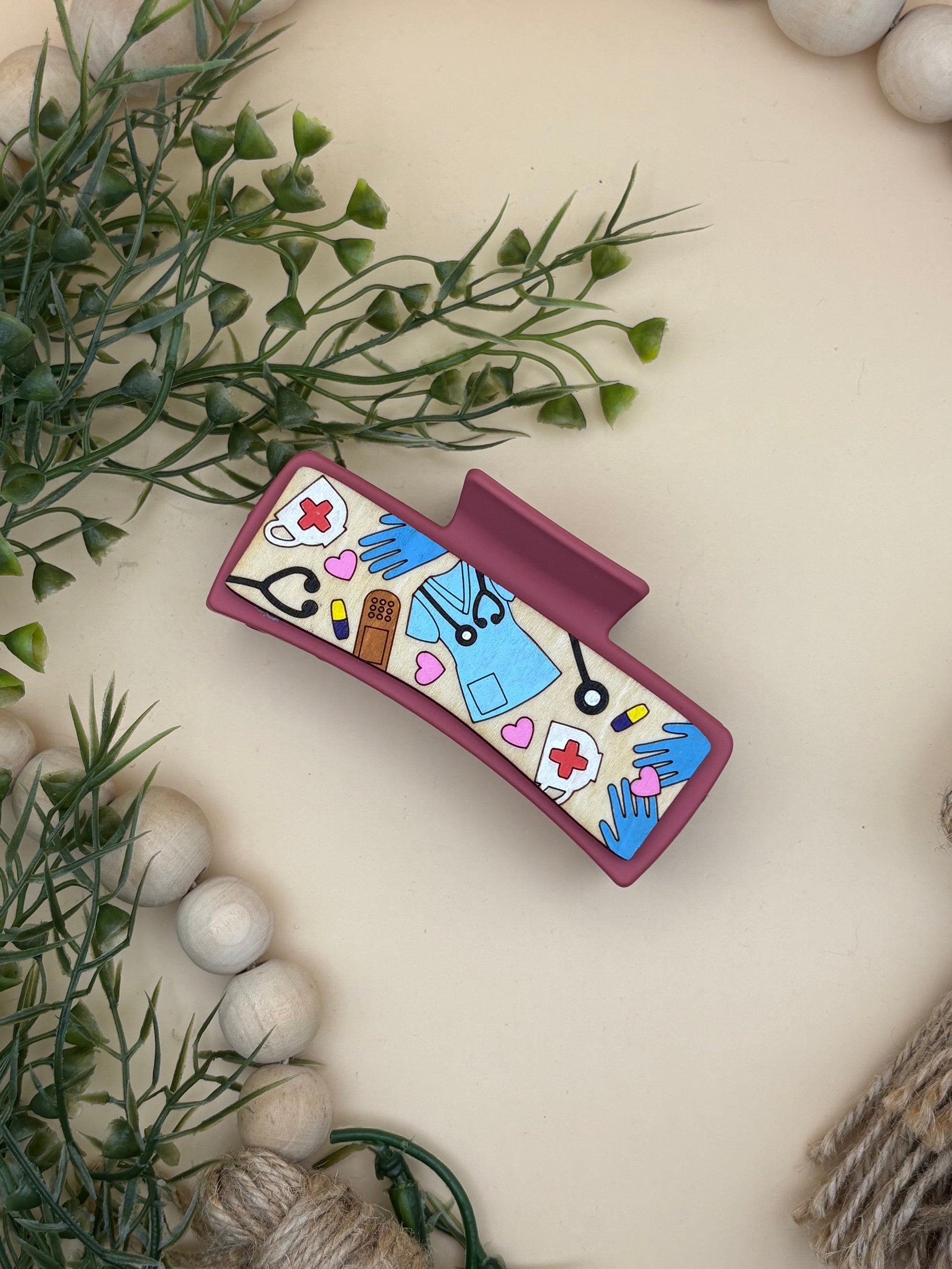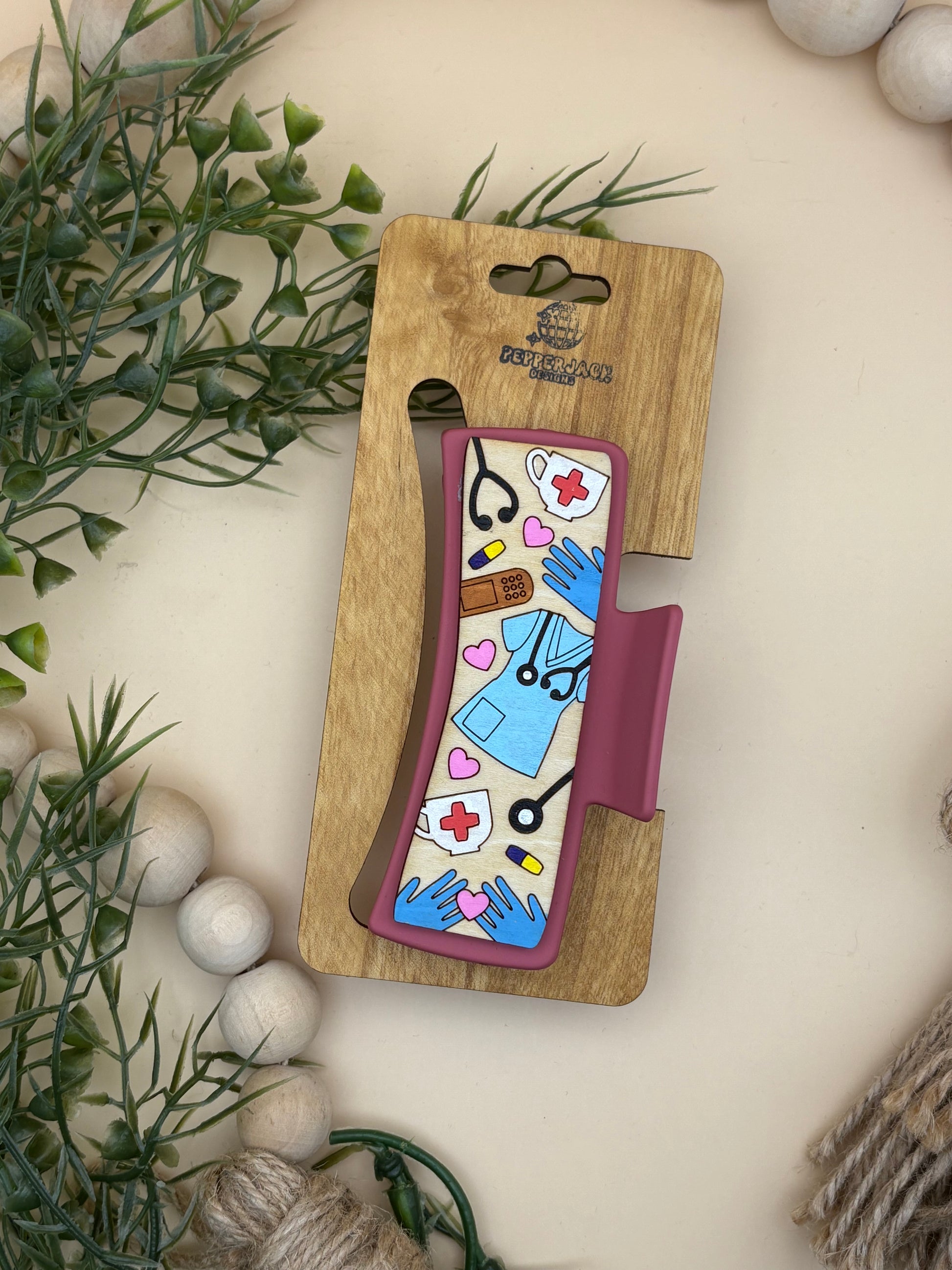 PepperJack Designs Nurse Pattern Claw/Hair Clip