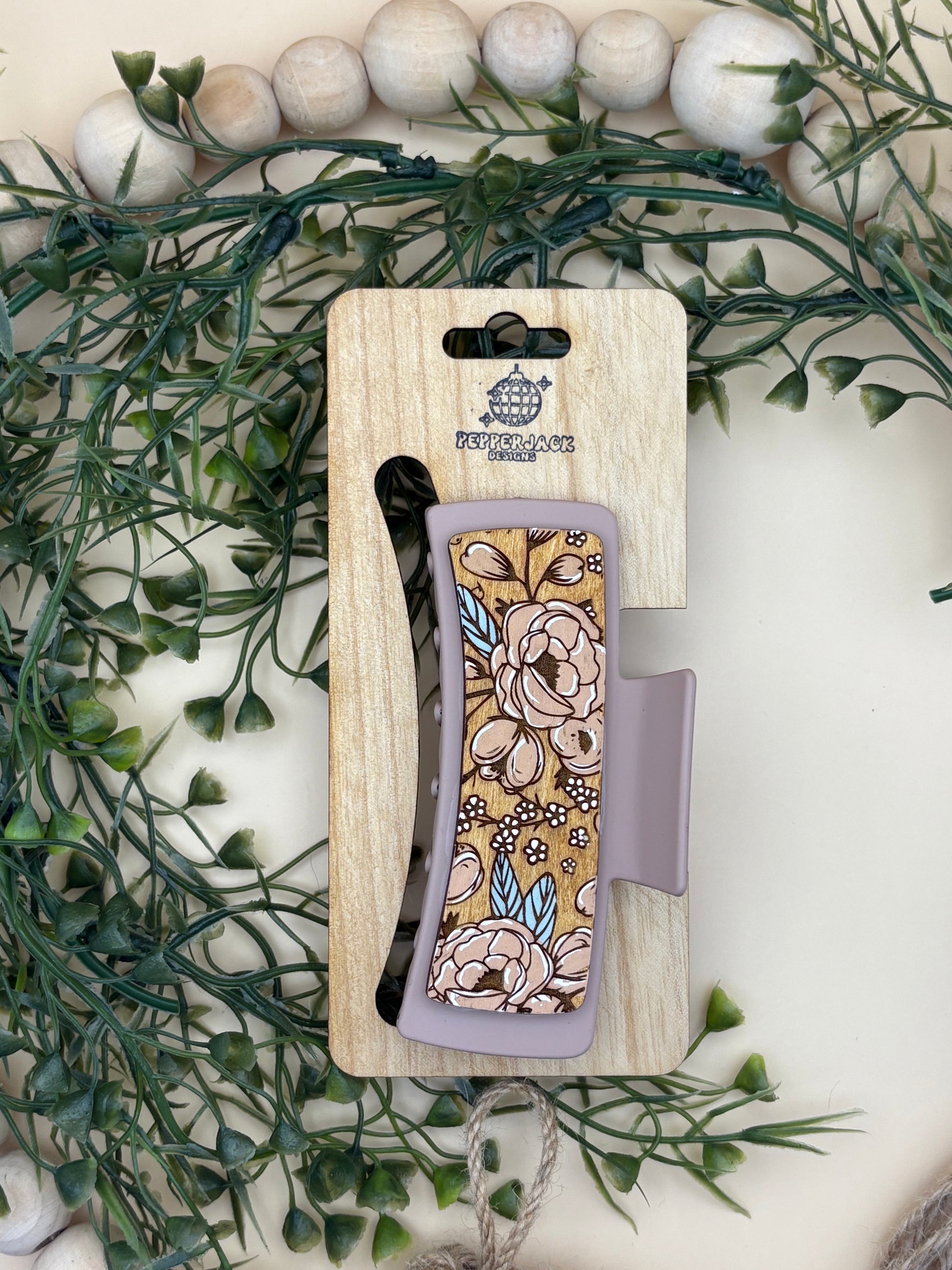 The Roses Claw Clip by PepperJack Designs beautifully blends style and practicality. Adorned with a charming rose motif, this hair accessory is not just a tool for managing your hair; it’s a stunning statement piece that enhances any outfit. Whether you’re off to the office, enjoying a casual brunch, or heading out for a night on the town, this claw clip ensures you look effortlessly chic while keeping your hair perfectly in place. Crafted for durability, it provides a secure grip, allowing you to move confidently throughout your day.