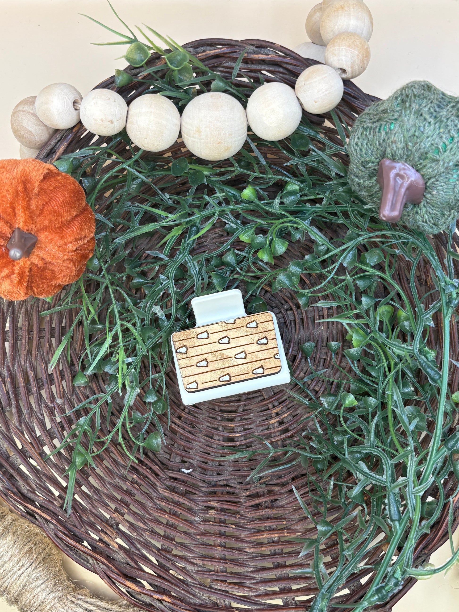 PepperJack Designs presents the Rustic Ghost Striped Mini Claw Clip, a lightweight wooden hair accessory handmade and hand-painted with a playful ghosts-and-stripes motif. Its intentionally rustic finish captures cozy Fall and Halloween charm, making it a cheerful addition for spooky-season outfits or everyday autumn looks. The compact mini claw holds small sections of hair securely while adding a whimsical, vintage-inspired accent to ponytails, half-up styles, or as a decorative piece on hats and bags. Thoughtfully crafted for seasonal flair, this clip pairs easily with layered textures and warm tones in your wardrobe.