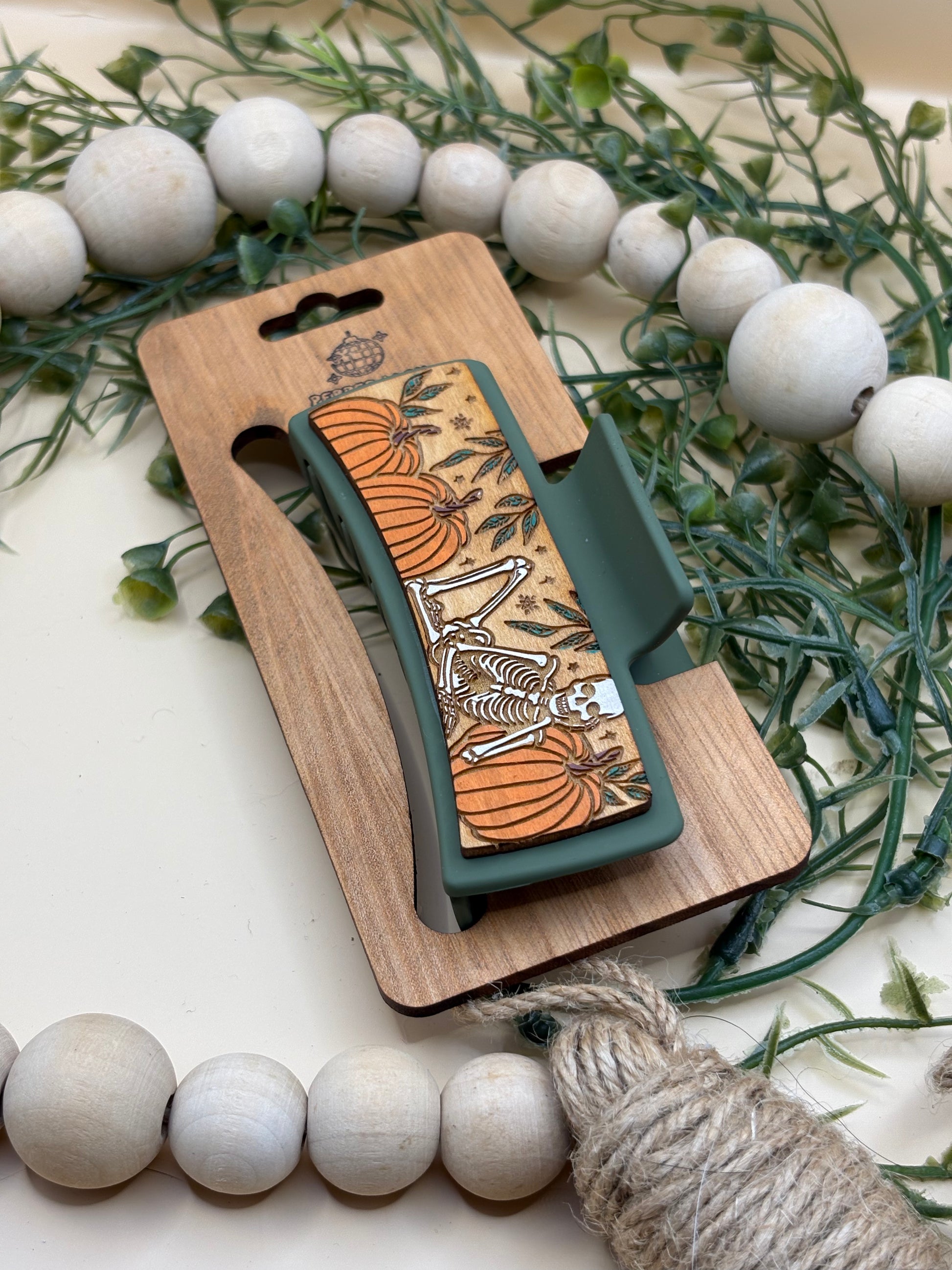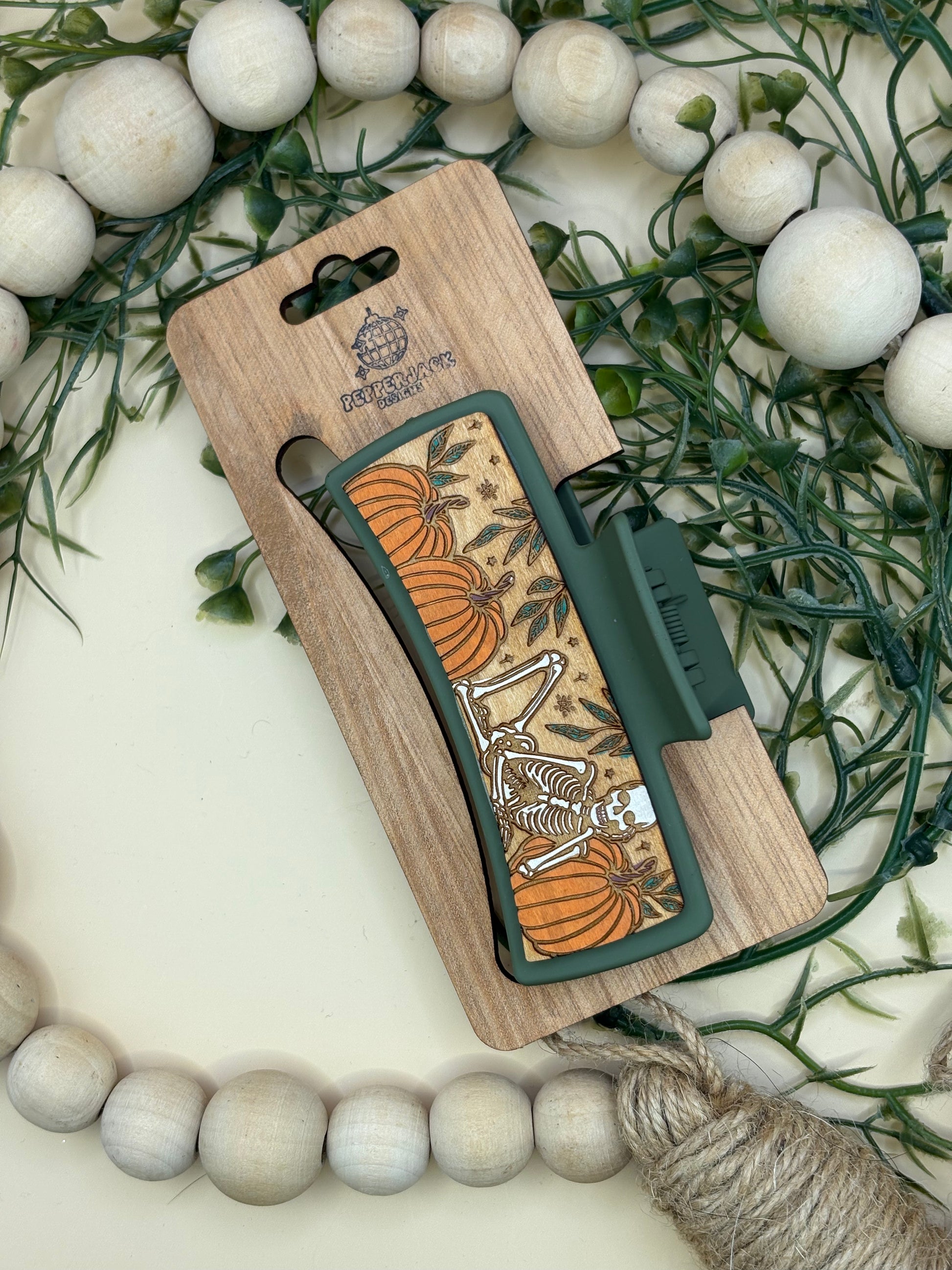 Skeleton In Pumpkin Patch Claw Clip by PepperJack Designs