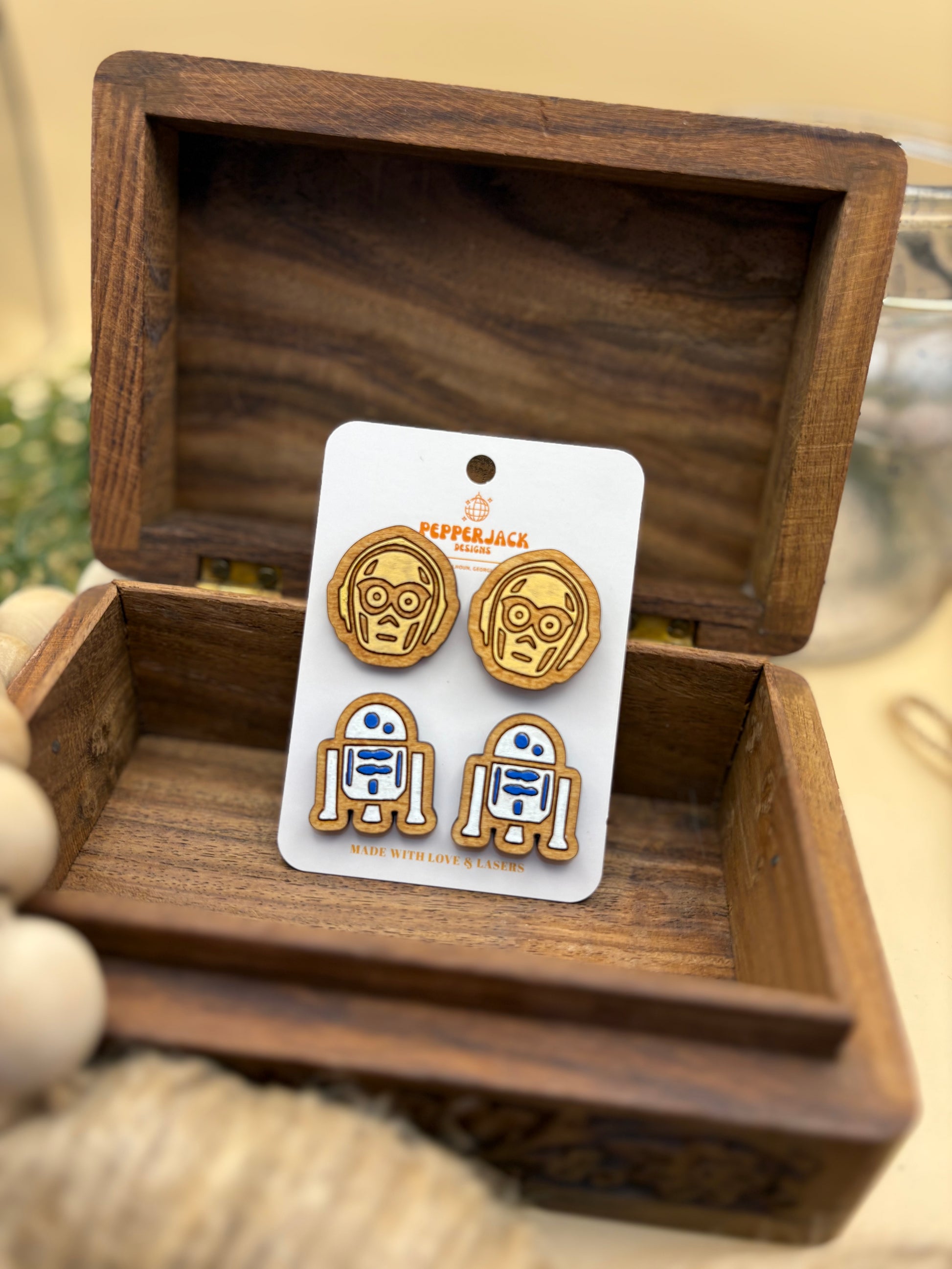 PepperJack Designs Star Wars Studs - C3PO & R2D2