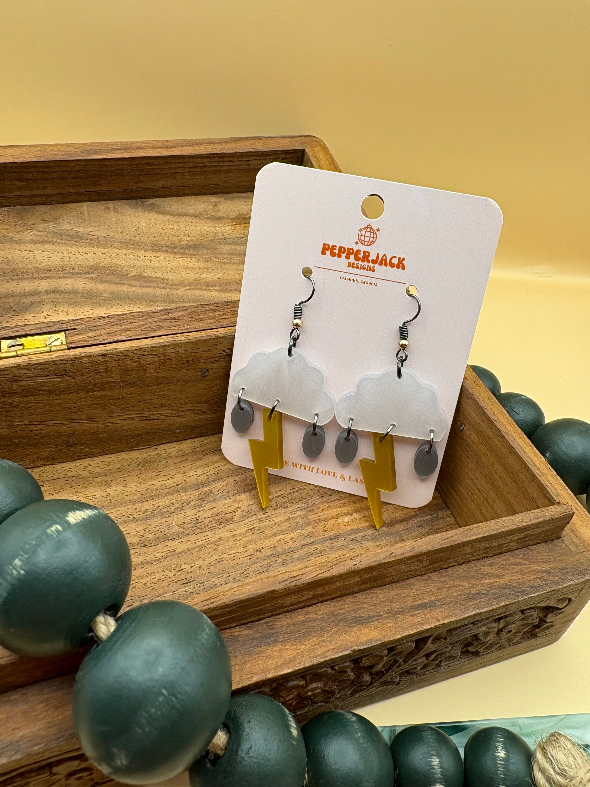 - Unique storm-inspired dangle design