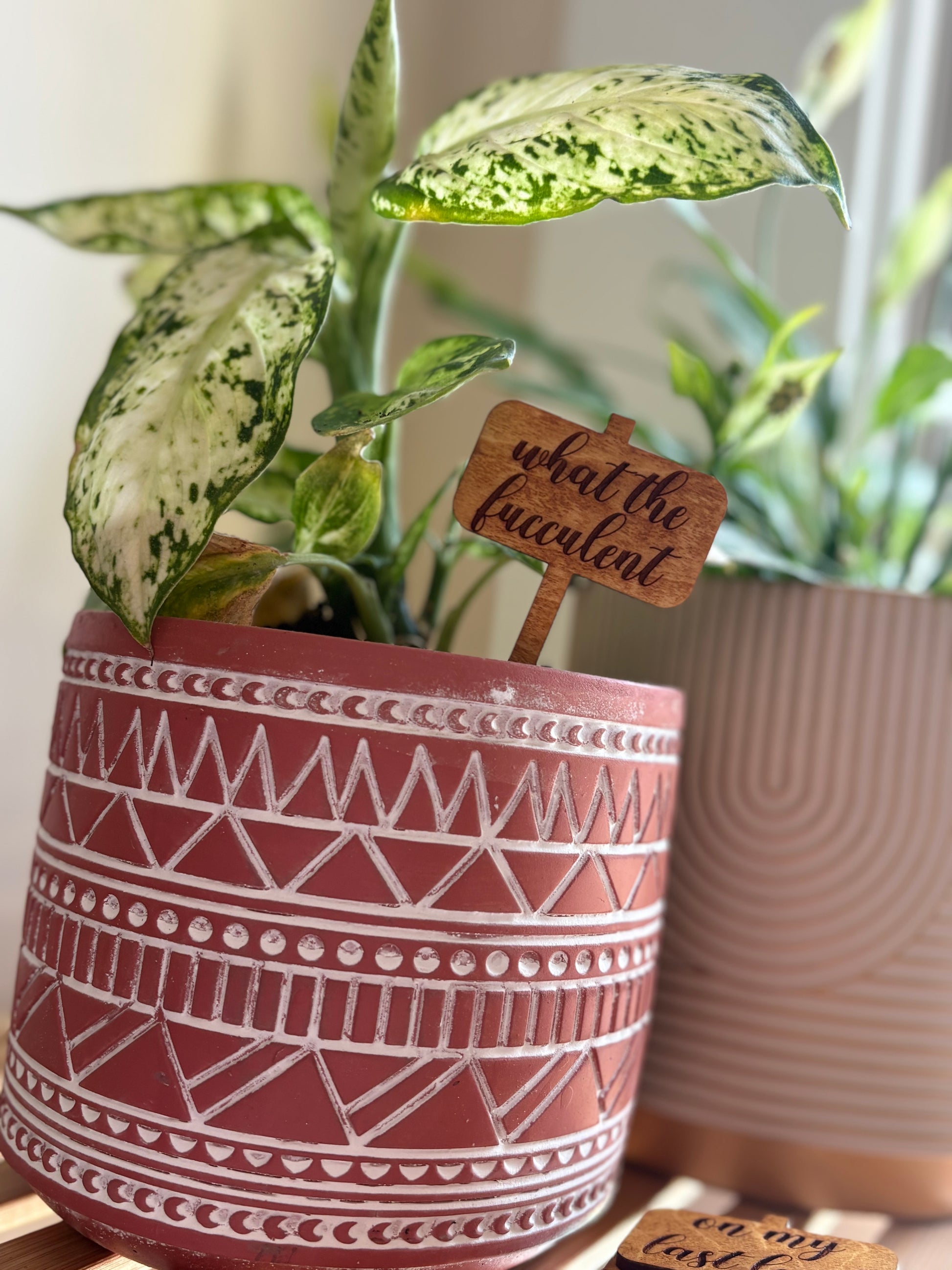 Introducing the What The Fucculent Plant Stake by PepperJack Designs! This delightful and humorous stake is crafted from lightweight wood, making it the perfect addition to your succulent collection. Not only does it add a touch of whimsy to your plants, but it also serves as a fun conversation starter. Whether you're a succulent enthusiast or looking for a quirky gift, this plant stake is sure to bring a smile to anyone's face. Elevate your plant game with this charming accessory that combines functionality with a dash of humor!