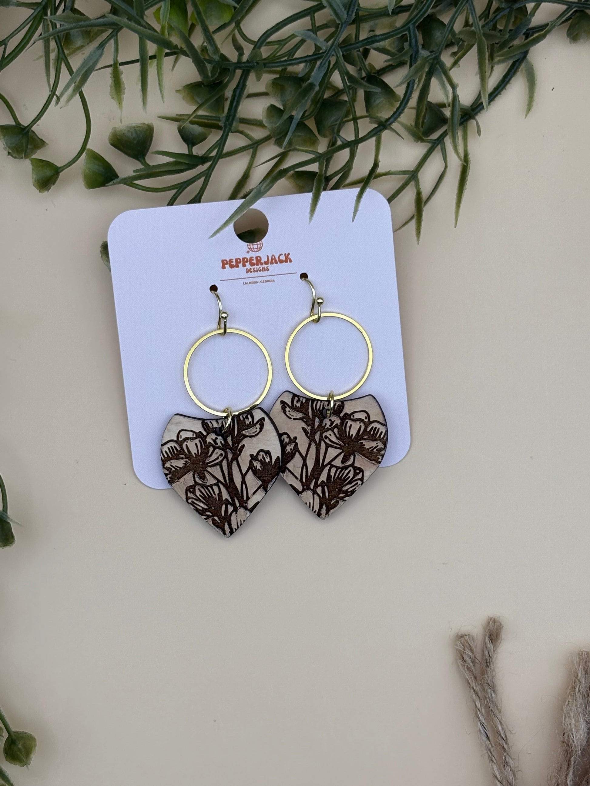 PepperJack Designs Wildflower Roses Triangle Drop Hoop Earrings